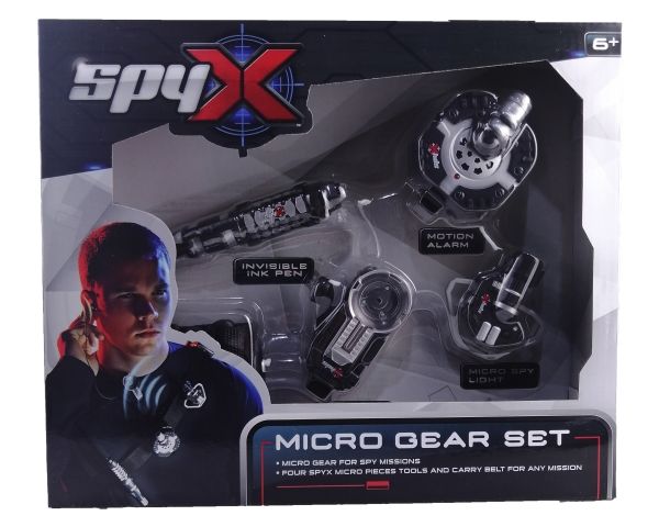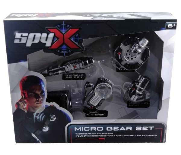 Med spyX Micro Gear-setet kan du se i mörkret, läsa och skriva hemliga meddelanden, skydda gömställen och lyssna på hemliga samtal på avstånd! Med ditt spionbälte på dig har du all din agentutrustning nära till hands och är alltid redo för ett farligt uppdrag.