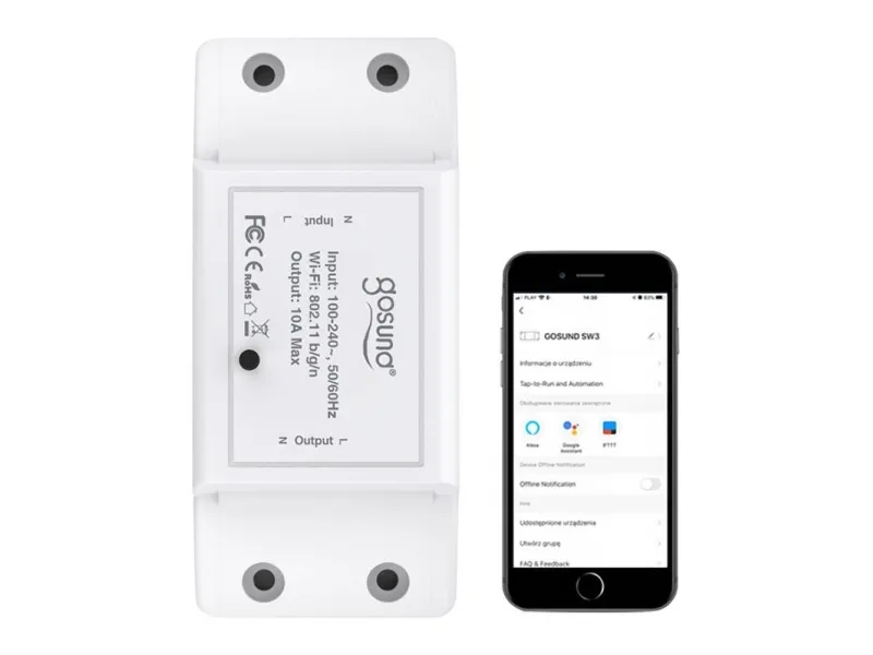The Gosund SW3 is a WiFi relay that is placed between a power source and the device you want to conveniently control. With this solution, we can run any equipment in our home with the help of the Gosund Smartphone App or Tuya Smart. The device's ease of use, immense capabilities and compact design make it an indispensable addition to your home.