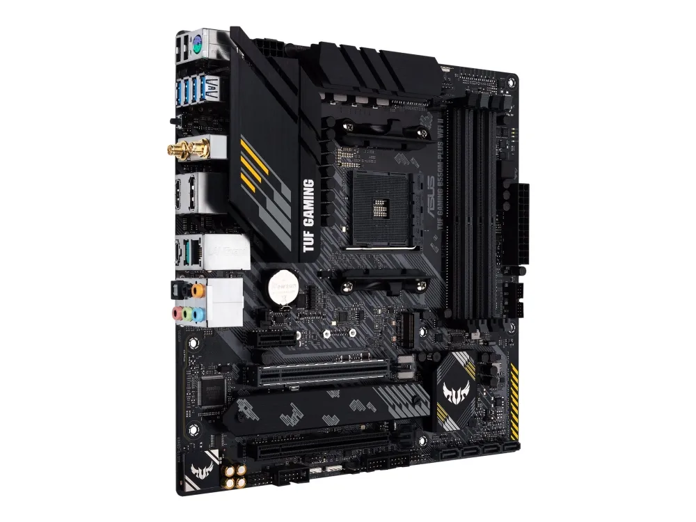 TUF Gaming B550M-Plus Wi-Fi II distills essential elements of the advanced AMD platform and combines them with game-ready features and proven durability. Engineered with military-grade components, an upgraded power solution and a comprehensive set of cooling options, this motherboard delivers rock-solid performance with unwavering gaming stability.