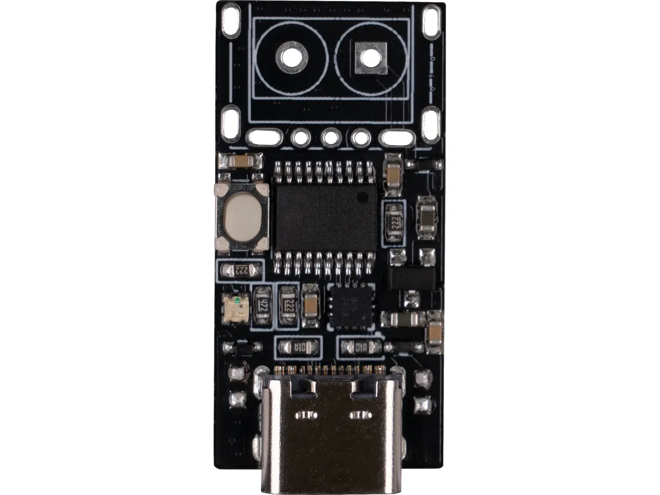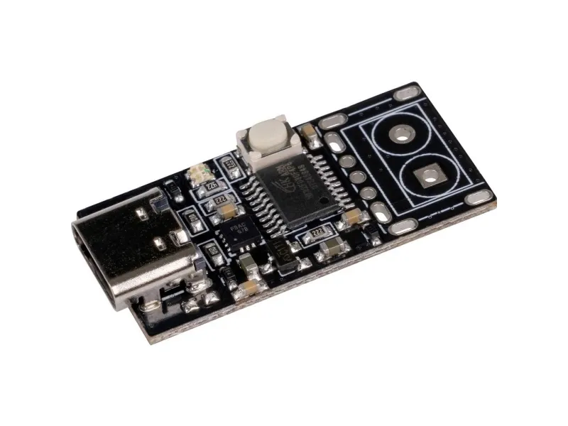 With this small module, you can trigger USB-PD protocols and thus, for example, charge your laptop via a PD-capable USB-C power supply. The output voltage can be adjusted in 5 steps (5 V, 9 V, 12 V, 15 V and 20 V) via the button integrated on the module. The currently selected voltage can be read from the colour of the RGB LED integrated on the module. The module can be used flexibly and is highly integrable.