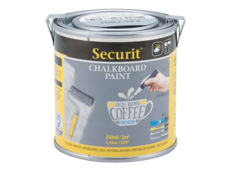 Chalkboard Paint – Water-based acrylic paint for use with chalkmarkers or traditional chalk. Create a chalk wall of any size or paint glass, metal, ceramic, plastic and wood (recommended to use a primer for non-traditional wall surfaces).