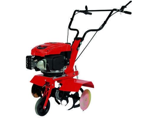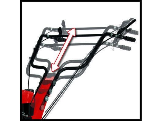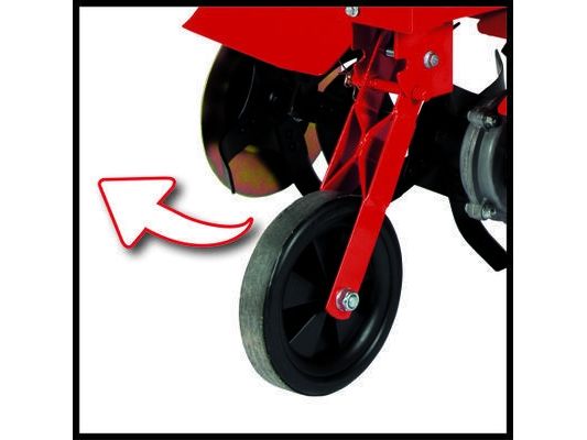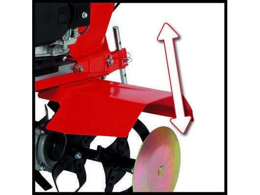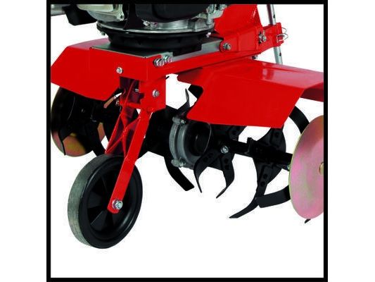 The GC-MT 2560 LD petrol hoe provides ambitious DIY enthusiasts with a practical and powerful garden tool for highly effective soil cultivation. A single-cylinder four-stroke engine with a crank shaft with bilateral bearings ensures high performance and smooth running. Speedy progress even through firm soil is assured by the robust cultivator blades. A height-adjustable brake shoe makes it easy to adjust the working depth. For safe operation the GC-MT 2560 LD comes with a hoe blade stop function – as soon as you let go of the switch, a dead man's circuit will shut down the blades. Side limiting discs ensure precise guidance. For user-friendly and effortless changes of location there is a swiveling guide wheel. Optimum adaptation of the hoe to users of all sizes is possible thanks to the ergonomic, height-adjustable steady grips.