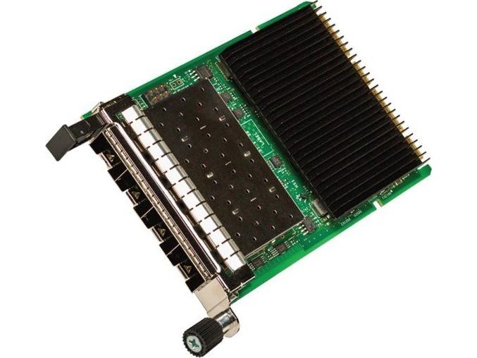 Intel Ethernet 800 Series Network Adapters improve application efficiency and network performance with innovative and versatile capabilities. With four 25GbE SFP28 ports and key performance optimizations, the E810-XXVDA4 for OCP 3.0 supports solutions across Cloud, Enterprise, and Communications. The OCP NIC 3.0 specification defines a standardized design for a new generation of network adapters. Simple and straightforward form factors, clear manageability requirements, and improved serviceability help simplify deployment for current and emerging capabilities. Performance optimizations and port density for Cloud and Storage deployments. Four 25GbE SFP28 ports deliver multiple high- speed connections. Application Device Queues (ADQ) provides dedicated traffic queues to reduce latency and increase application throughput. Dynamic Device Personalization enables protocol- specific traffic acceleration to improve packet processing efficiency and reduce CPU overhead. iWARP and RoCEv2 support provides high-speed, low-latency, high-throughput connectivity for Cloud storage targets. Accelerated packet processing and PCIe slot savings for Communications workloads. Four 25GbE ports deliver greater bandwidth in slot-constrained RAN systems. Enhanced Data Plane Development Kit (DPDK)support increases packet processing speeds. Dynamic Device Personalization enables protocol- specific traffic acceleration and reduces CPU overhead for emerging high-bandwidth workloads. IEEE 1588 PTP v2 support enables precise clock synchronization across 5G. Flexible Configurations. Intel Ethernet Optics, and specification-compliant Active Optical Cables and Direct Attach Cables, can support multiple configurations.