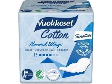 Vuokkoset COTTON trosskydd med vingar Normal Sensitive 12 st
