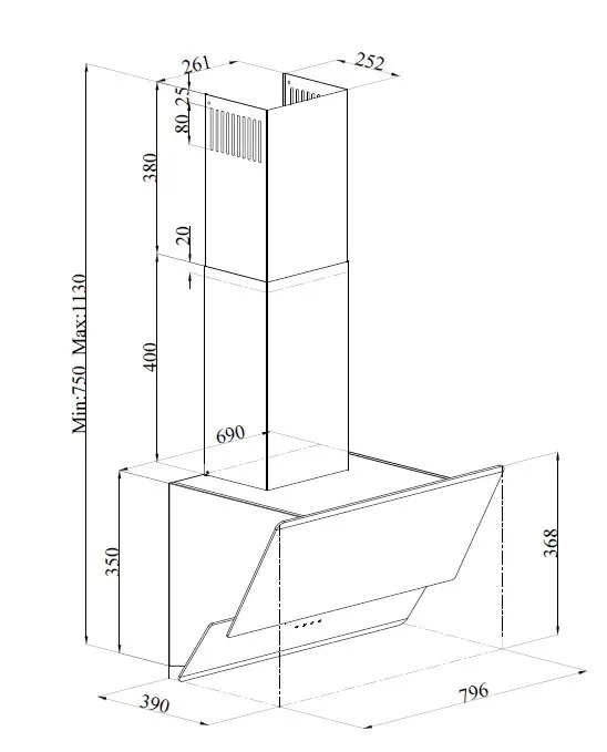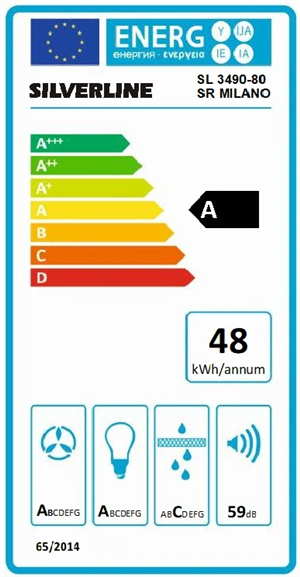 | Kapacitet 285–665 m3/h (80 cm) Ljudnivå 45–59 dB (80 cm) Energiklass A 3 hastigheter Fingertryck Belysning 2 x 3 W LED Tvättbart fettfilter i aluminium Kantsug |