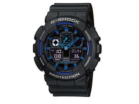 Introducing a collection of new G-SHOCK models whose 35mm diameter faces and large cases give them a look of power and strength. Dial rings and raised hour markers create three-dimensional depth that gives the face plenty of character. The popular G-SHOCK three-dial face design incorporates one analog dial in the center, with digital dials on either side. These watches are designed and engineered to deliver outstanding shock resistance and water resistance, as well as anti-magnetism. Over-sized buttons come with a checkered anti-slip surface to make operations fast and sure. 1/1000-second stopwatch, velocity indicator, World Time, 5 alarms and much more provides these models with unmatched function and performance.