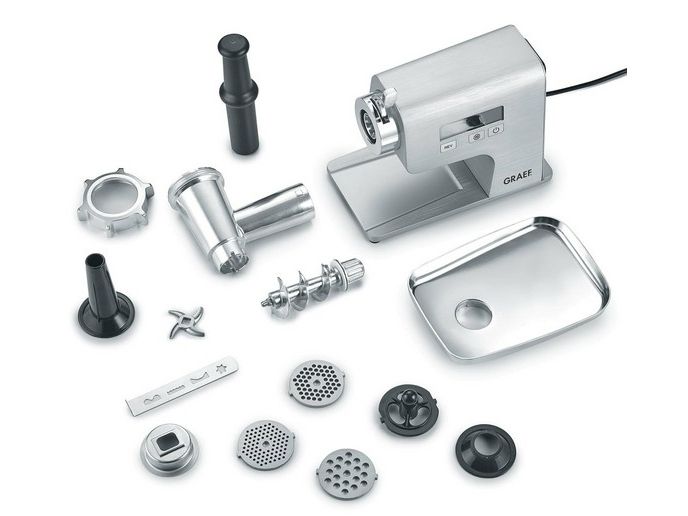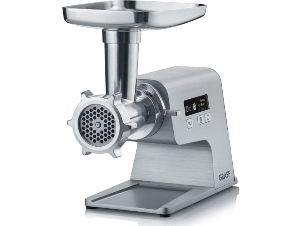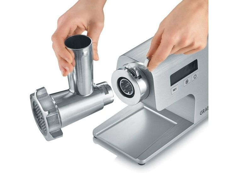 Healthy smoothies, quick vegetable processing or creamy mashed potatoes - the GRAEF Multiwolf is much more to than a meat grinder that prepares the meat for the next DIY burger patty. Because regardless of whether you are a flexitarian, vegetarian or vegan: the compact, 400 watt multi-talent with extensive accessories offers countless options for every food preference - from delicious mushroom farce and shortbread biscuits to homemade pasta with fresh fish cakes. The versatile helper can not only be integrated into every household in a particularly space-saving manner, thanks to its three perforated mincing plates, the sausage filling funnel and the kebbe- and biscuit attachment, there are no limits to the imagination. The Multiwolf processes even thick steaks into delicious meatballs or sausages with a blocking power of up to 2,500 watts and at two speed levels. And if something gets stuck in the elegant aluminum housing, the overload protection lights up on the digital display and the reverse run solves the problem. Thanks to the high-quality workmanship and materials, the Multiwolf is a long-lasting addition to the kitchen and at the same time ensures more sustainability. With the GRAEF Multiwolf, food leftovers can be processed optimally and do not end up in the bin. Leftover fruit and vegetables can be turned into healthy smoothies or delicious spreads. The intelligent conveying system leaves hardly any residues. These can be removed with little effort, as the aluminum screw and the aluminum filling tray of the machine can be easily removed and cleaned.
