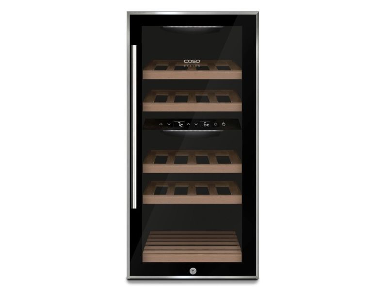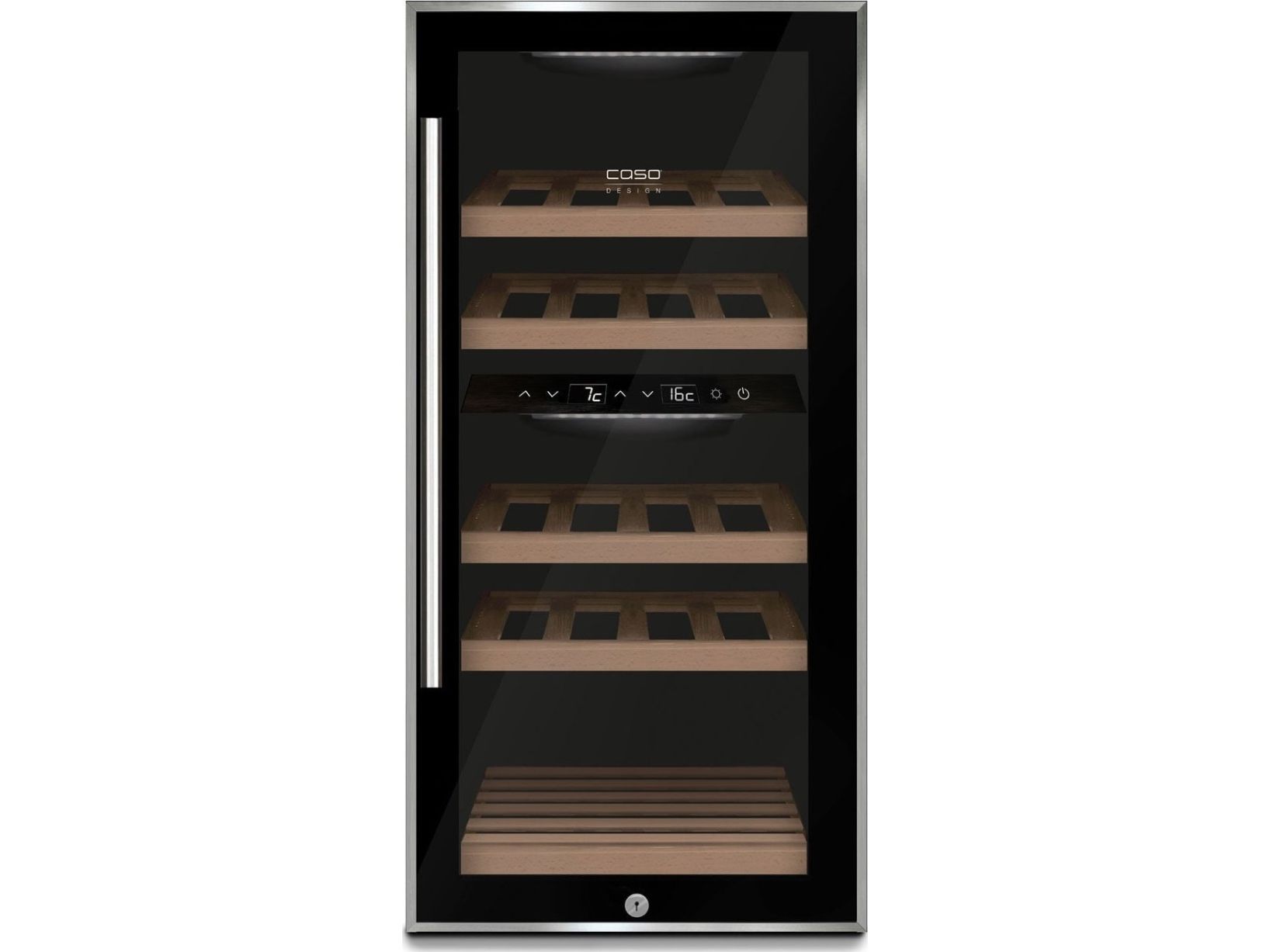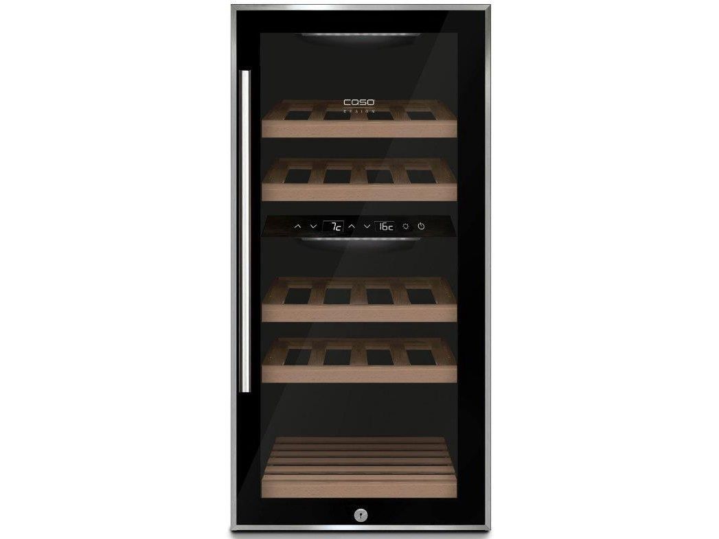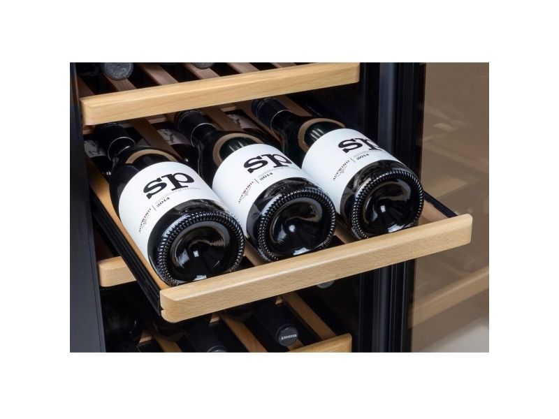 Den angivna flaskkapaciteten beräknas med en flaska Bordeaux som standard och utan hyllor i skåpet. Dvs. att det faktiska antalet flaskor som skåpet kan rymma, med hyllor monterade, kommer att vara mindre än den mängd som anges i produktspecifikationerna.
