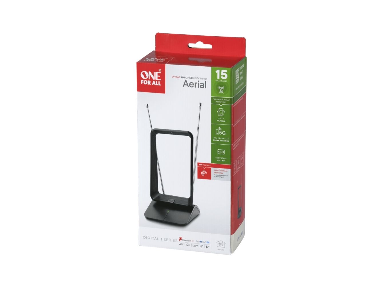 Modern One For All antenna optimized for reception of Full HD digital TV signals. For best performance, recommended to use this antenna within a range of 25 km from your nearest transmitter.