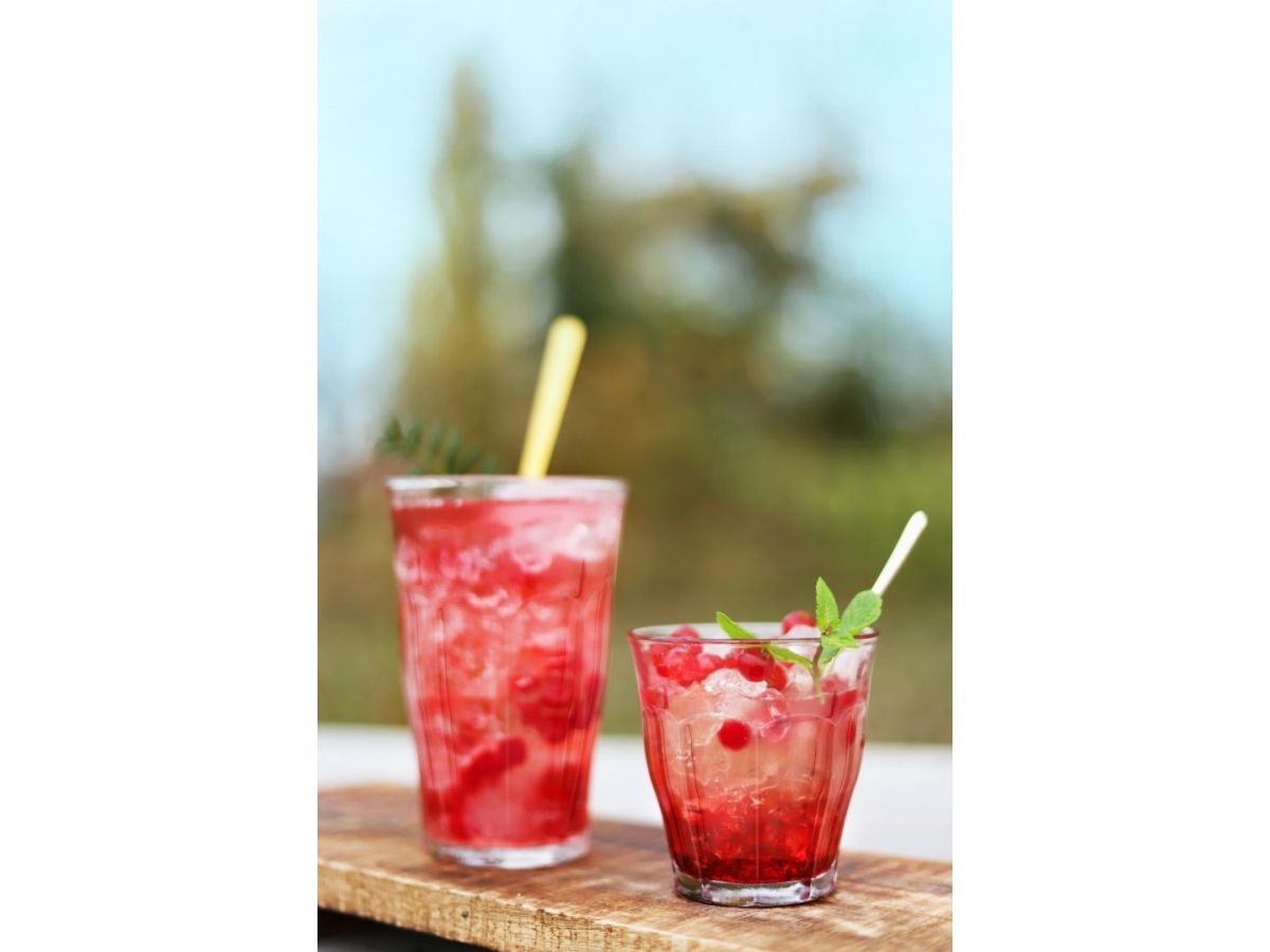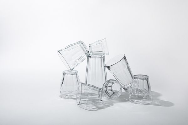 Stöttåligt och härdat glas från Duralex som är formgivet för att vara bevämt att hålla i handen, med facetter som reflekterar ljuset och förskönar drycken.