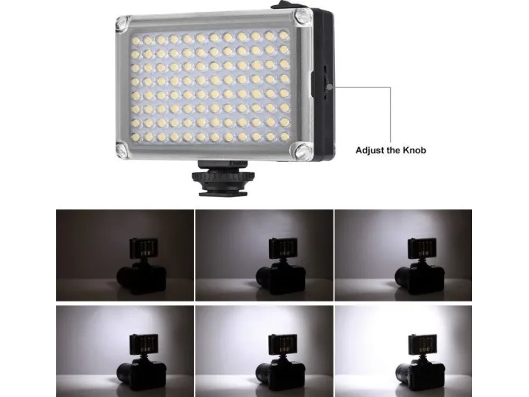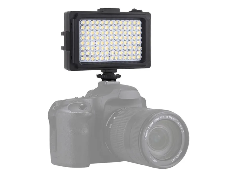 Easy-to-carry, compact and functional LED lamp, designed for DSLR camera or smartphone tripod photography. Supports the input power of a lithium battery or 4 AA batteries. With the help of support for external power supply (micro 5 pin port), it allows for long use, such as outdoors. It has 96 pieces of high-quality LED beads.It is extremely efficient and economical.