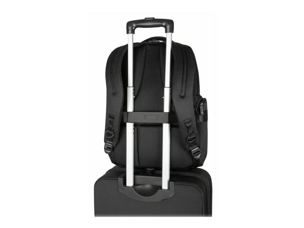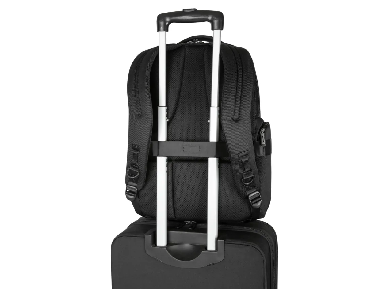 Discover the perfect blend of style, functionality, and protection with the Targus Mobile Elite backpack. Designed specifically for the mobile professional, this backpack accommodates notebooks up to 16 inches, offering a secure and snug fit with its SafePORT Sling Protection System. Beyond device safety, it features a waterproof bottom to keep your belongings dry in wet conditions, and an airmesh back for enhanced comfort during extended wear. The thoughtful organization is evident in its multiple compartments, including dedicated spaces for water bottles, eyewear, and a front pocket for quick access items. Whether you're commuting to work or traveling for business, the Targus Mobile Elite backpack is your reliable companion for carrying your notebook and essentials with ease and security.