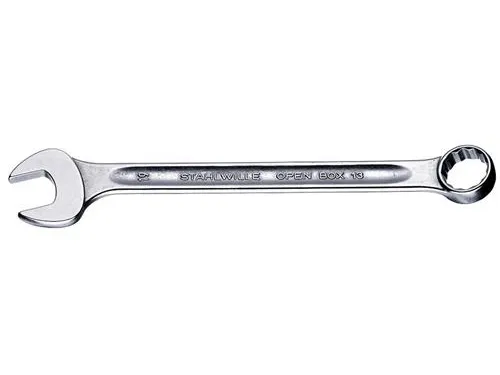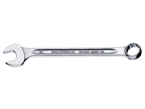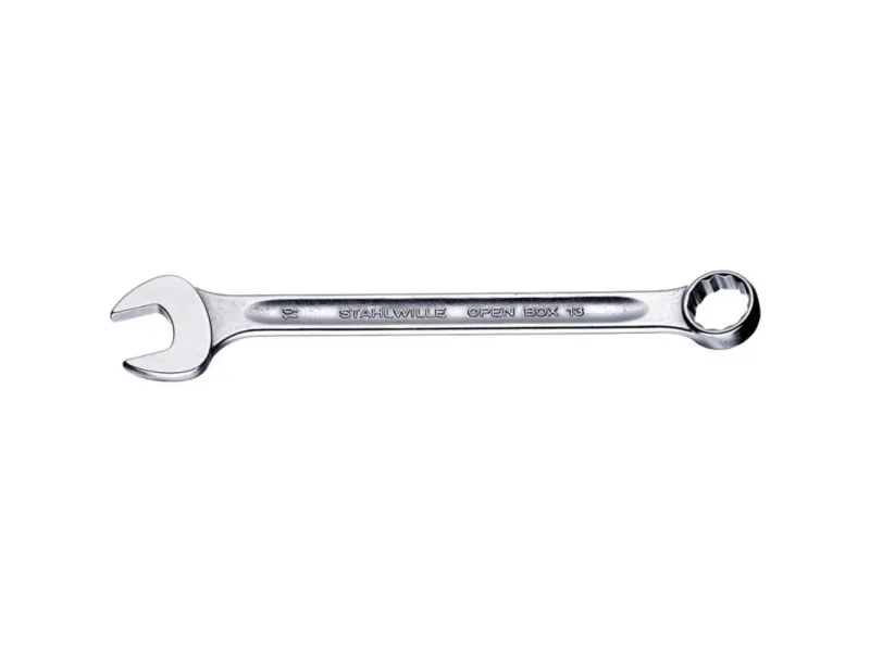 · din 3113 form A/ISO 7738 form A. · gaffelside lige, ringside 15° vinklet · stabil, slank og let intelligent konstruktion · høj bøjestyrke med dobbelt-T-profil · gribesikker, hudvenlig overflade med Stahlwille rundfinish · ekstremt belastbar, usædvanligt lang levetid · sænksmedet, hærdet og nedkølet i oliebad · Chrome-Alloy-Steel, forkromet