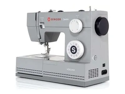 The Singer Denim HD6335M sewing machine is designed to offer a versatile sewing experience, suitable for both beginners and experienced sewers. With a total of 34 built-in stitches, this machine allows for creativity and flexibility in sewing projects. The adjustable stitch length and width help to tailor the stitching according to specific fabric types and personal preferences. Its convenient carrying handle makes it easy to transport for classes or projects on-the-go. Additionally, the automatic buttonhole feature streamlines the process of creating professional-looking buttonholes, making sewing more efficient. The simple dial stitch selection enables quick changes between stitches, ensuring a smooth sewing experience. Whether working on denim or other fabrics, the Singer HD6335M delivers reliability and functionality in every stitch.
