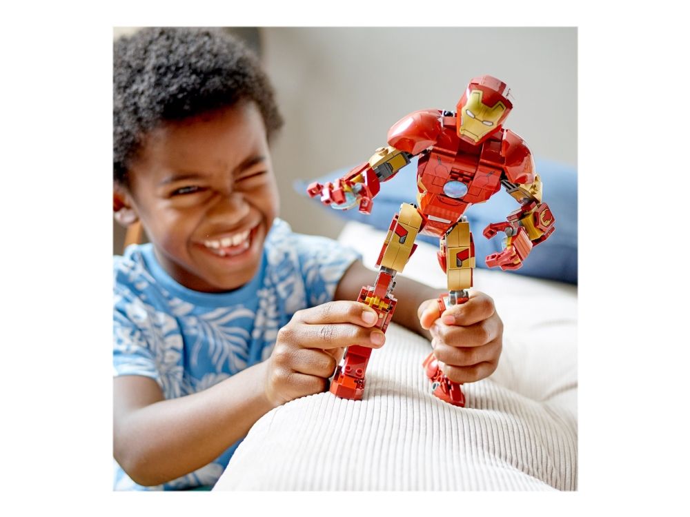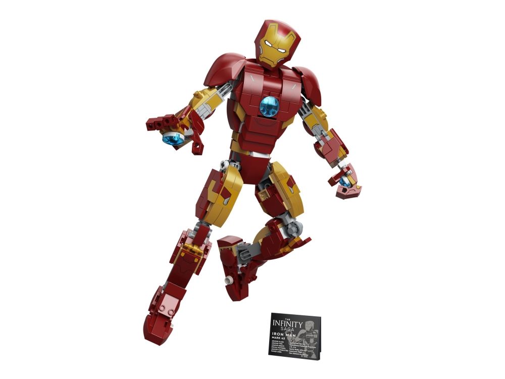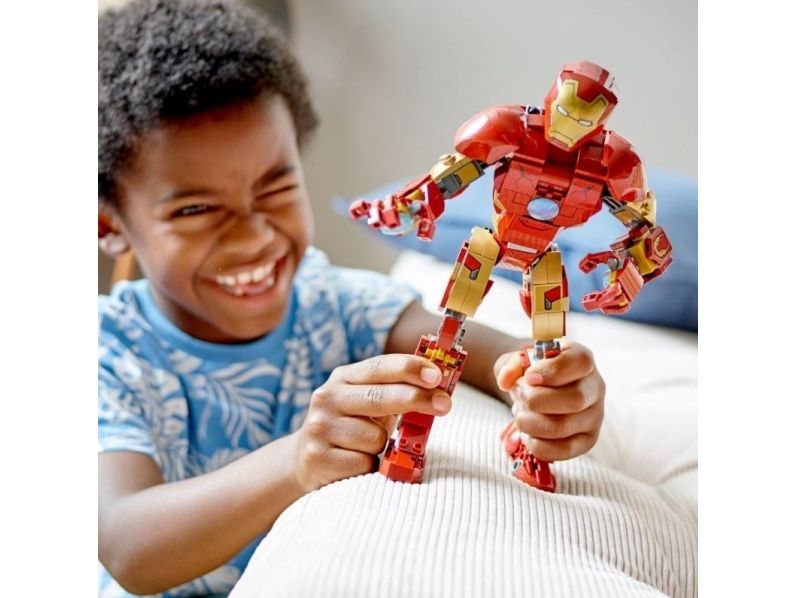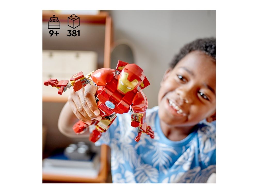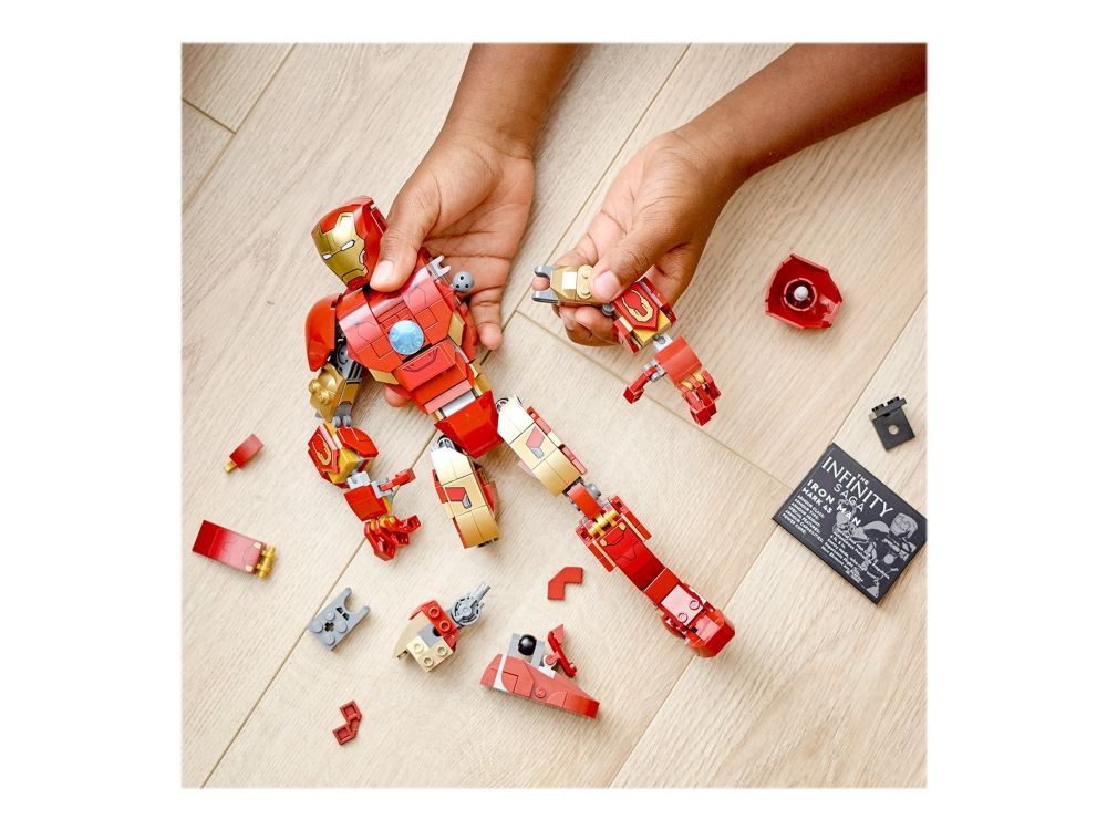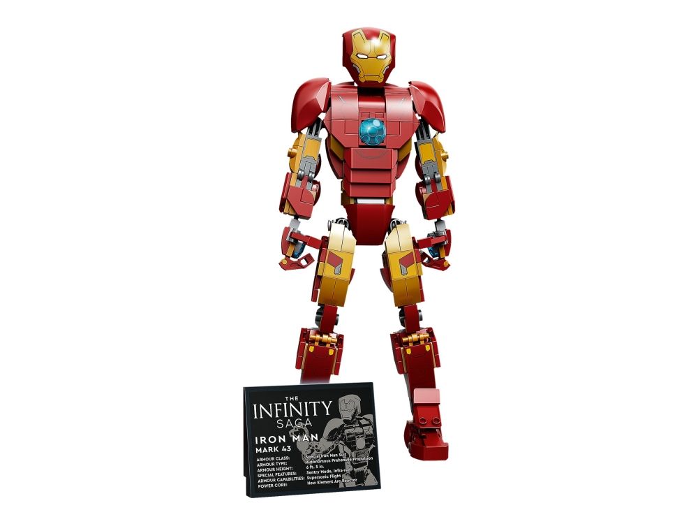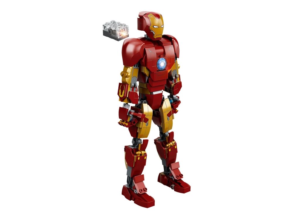 Denna realistiska kopia, baserad på Iron Man från Marvel Studios Avengers: Age of Ultron, är helt ledad så att barn kan röra och ändra läge på LEGO Marvel figuren när de tar sig an olika stridsuppdrag. En knappstyrd ljuskloss som lyser upp bågreaktorn i Iron Mans bröst gör setet ännu mer realistiskt. När Iron Man har slutat rädda världen för dagen är modellen snygg att visa upp och har en avtagbar skylt med information om Avengers ikoniska bepansrade medlem. I gratisappen LEGO Bygginstruktioner finns en digital bygguide som barn kan använda för att zooma, rotera och visualisera sin modell. Det finns dessutom en guidad, verklig byggprocess så att även yngre byggare kan bygga med självförtroendet i topp.