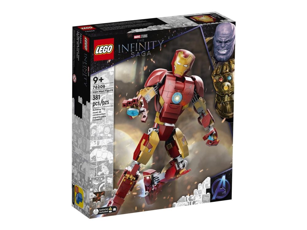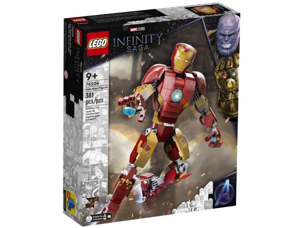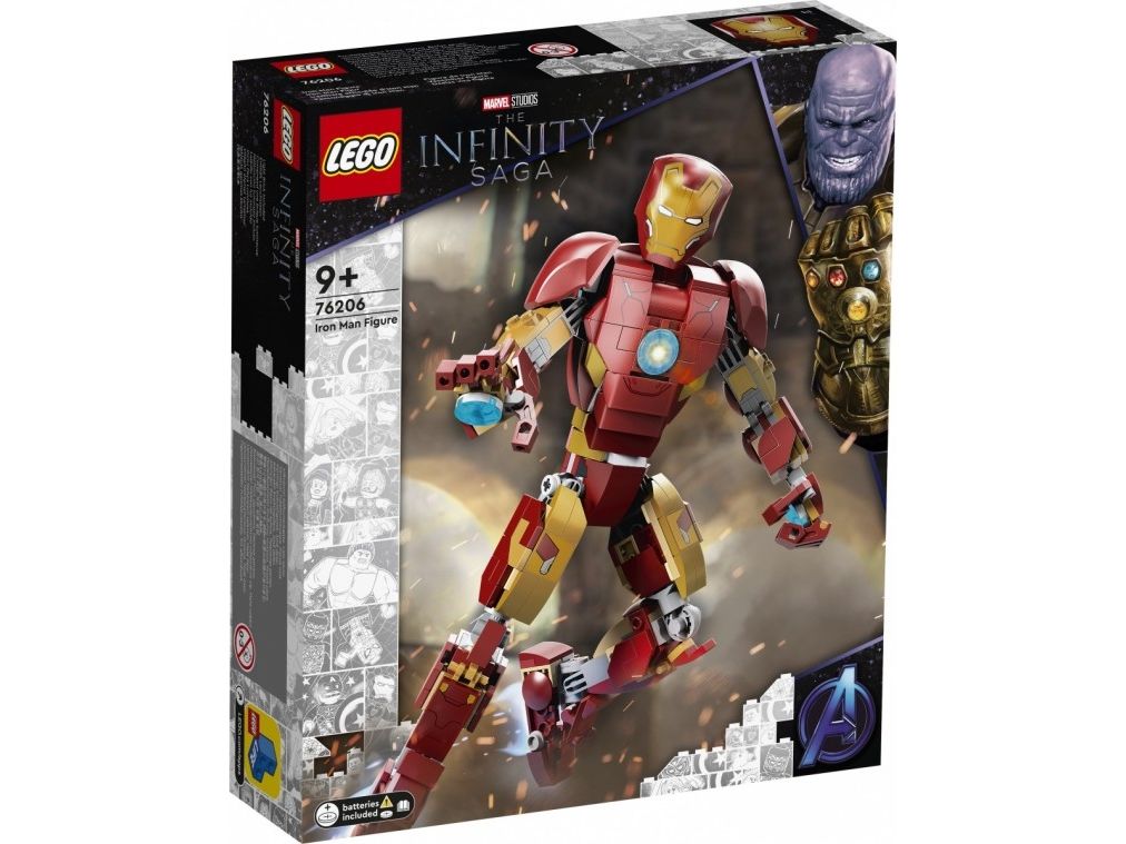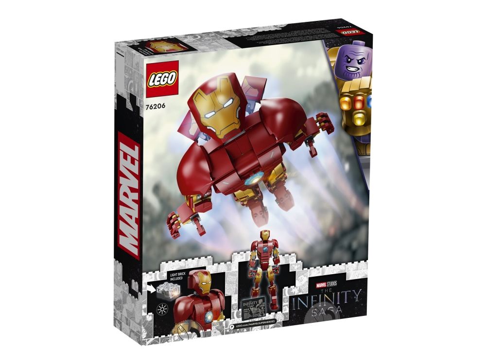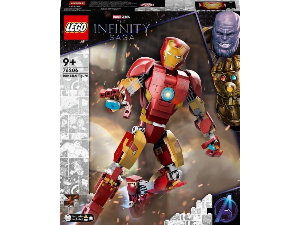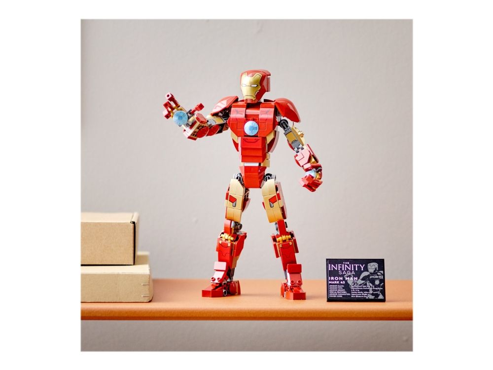 Denna realistiska kopia, baserad på Iron Man från Marvel Studios Avengers: Age of Ultron, är helt ledad så att barn kan röra och ändra läge på LEGO Marvel figuren när de tar sig an olika stridsuppdrag. En knappstyrd ljuskloss som lyser upp bågreaktorn i Iron Mans bröst gör setet ännu mer realistiskt. När Iron Man har slutat rädda världen för dagen är modellen snygg att visa upp och har en avtagbar skylt med information om Avengers ikoniska bepansrade medlem. I gratisappen LEGO Bygginstruktioner finns en digital bygguide som barn kan använda för att zooma, rotera och visualisera sin modell. Det finns dessutom en guidad, verklig byggprocess så att även yngre byggare kan bygga med självförtroendet i topp.