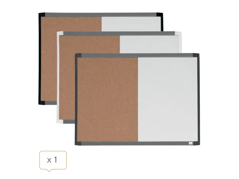 Quartet magnetic combination boards feature a magnetic dry-erase surface and a cork notice board in one frame for really flexible display. The boards include mounting magnets, foam adhesive tape, a magnetic rewritable dry erase marker and two magnets.