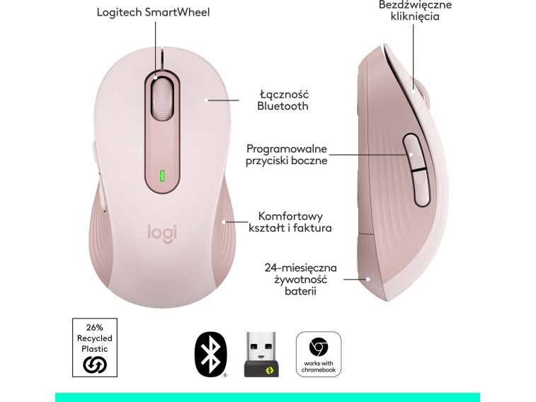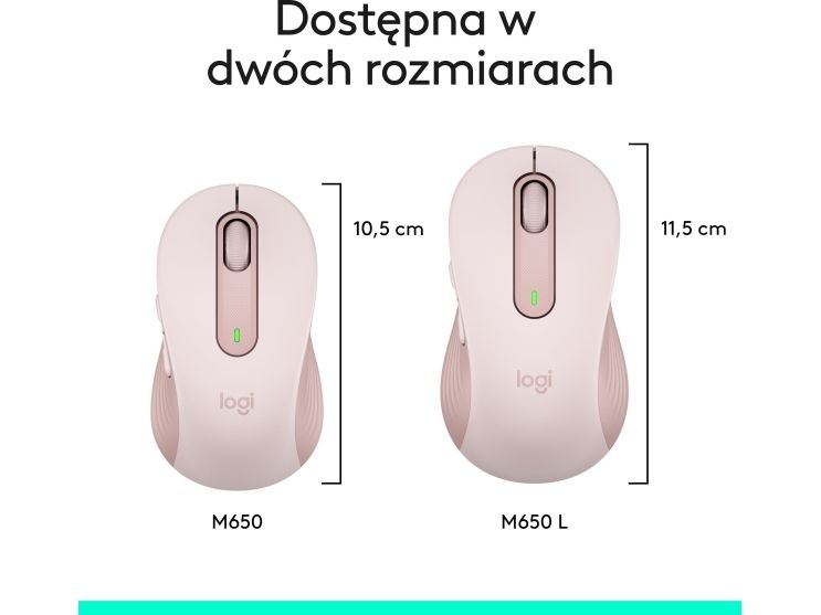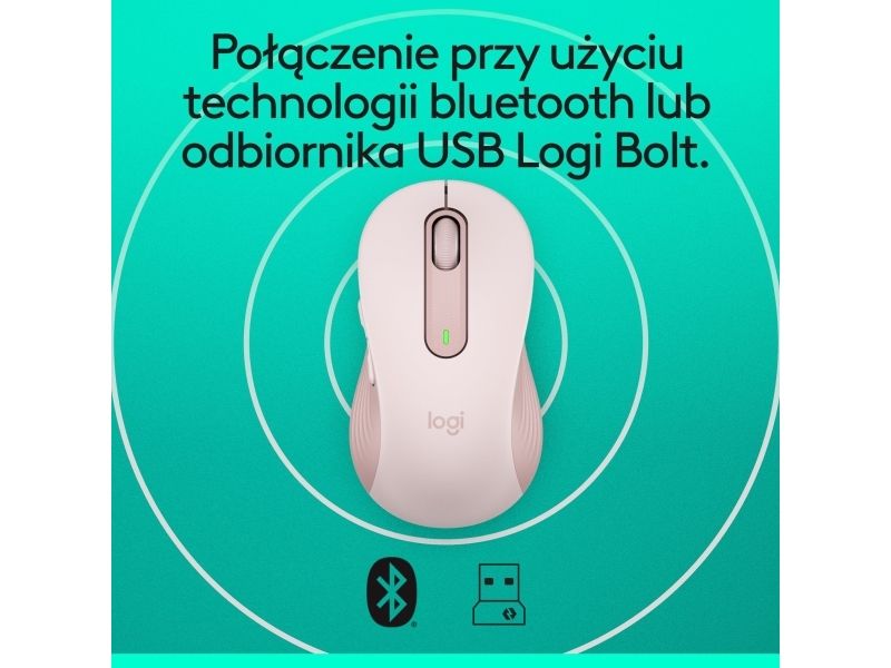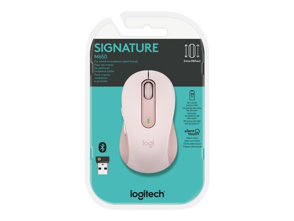 Logitech Signature M650 - Mus - optisk - 5 knappar - trådlös - 2.4 GHz, Bluetooth - Logitech Logi Bolt USB-mottagare - rosa