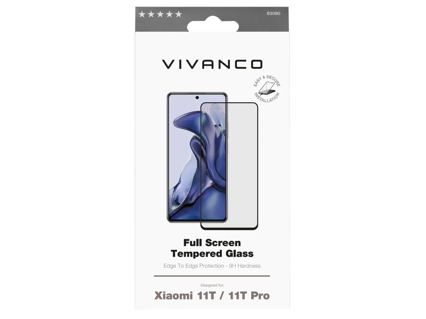 Vivanco Full, Xiaomi, 11T, 11T Pro, Smutsavvisande, Slagtålig, Reptålig, Splitterskyddad, Svart, Transparent, 1 styck