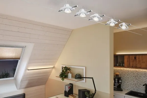 ,3-reflektor i vitt passar RAL-materialfärgerna i Paulmanns ledningsnät. Den har en behaglig neutralvit ljusfärg och passar utmärkt för ledningsnät med GU5,3-fäste.