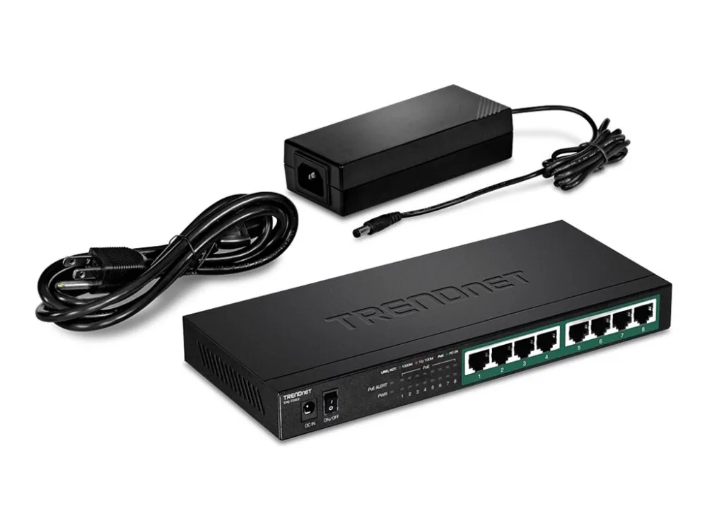 TRENDnet TPE TG83-switchen är utformad för att uppfylla de högpresterande behoven hos moderna företag. Med åtta Gigabit Ethernet-portar erbjuder denna switch robusta anslutningsmöjligheter för en mängd olika enheter. Dess PoE+-funktion, i kombination med en 65 W PoE-budget, möjliggör flexibel distribution av nätverksenheter utan behov av ytterligare strömkällor. Switchens växlingskapacitet på 16 Gbps och vidarebefordringsprestanda på 11,9 Mpps säkerställer att data flödar smidigt och effektivt, även i miljöer med hög trafik.