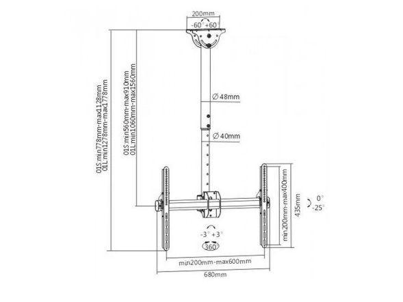 ICA CPLB-946S is a telescopic bracket ceiling full-motion designed to offer the ultimate in versatility and universal compatibility.
