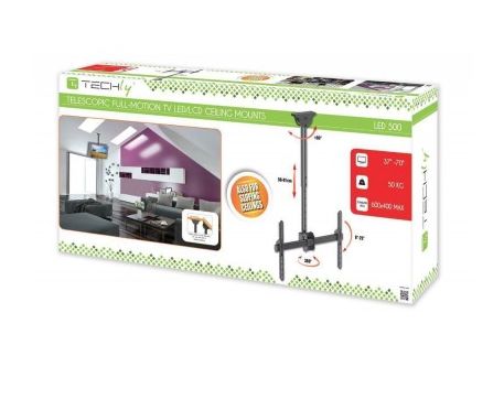 TECHly - Monteringssats (takmontering, monteringskonsol, teleskoppåle) - för platt panel - stål - svart - skärmstorlek: 37"-70" - takmonterbar