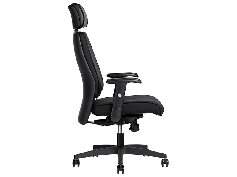 Kontorsstolen AS6002 är en klassiker. Den här versionen av AS6002 kommer i svart textil för god komfort och enkel rengöring. Den höga ryggen med justerbart nackstöd i läder ger god avlastning för nacke och axlar Välj mellan läder eller textil Armstöden är justerbara i höjdled Stolen har låsbara, synkroniserade gungor och djupinställbar sits för optimal komfort. Kontorsstolen AS6002 levereras med svart nylonhjul.