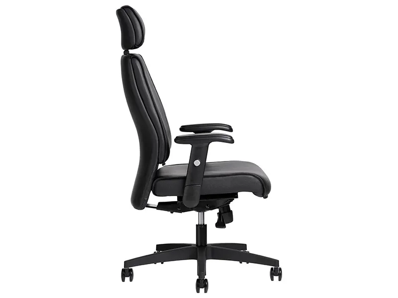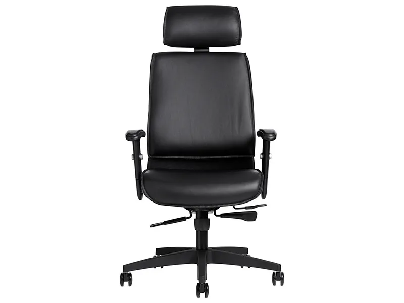 Kontorsstolen AS6002 är en klassiker. Den här versionen av AS6002 kommer i svart läder för komfort och enkel rengöring. Den höga ryggen med justerbart nackstöd i läder ger bra avlastning för nacke och axlar Stolens rygg är i konstläder. Välj mellan läder eller textil Armstöd är justerbara i höjdled Stolen har låsbara, synkroniserade gungor och djupinställbar sits för optimal komfort. Kontorsstolen AS6002 kommer med svart nylonhjul.