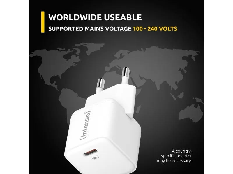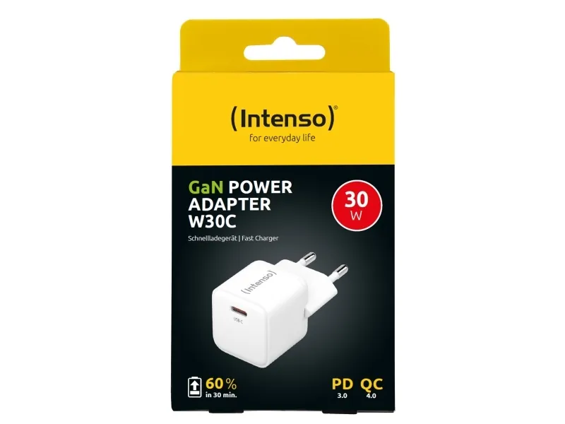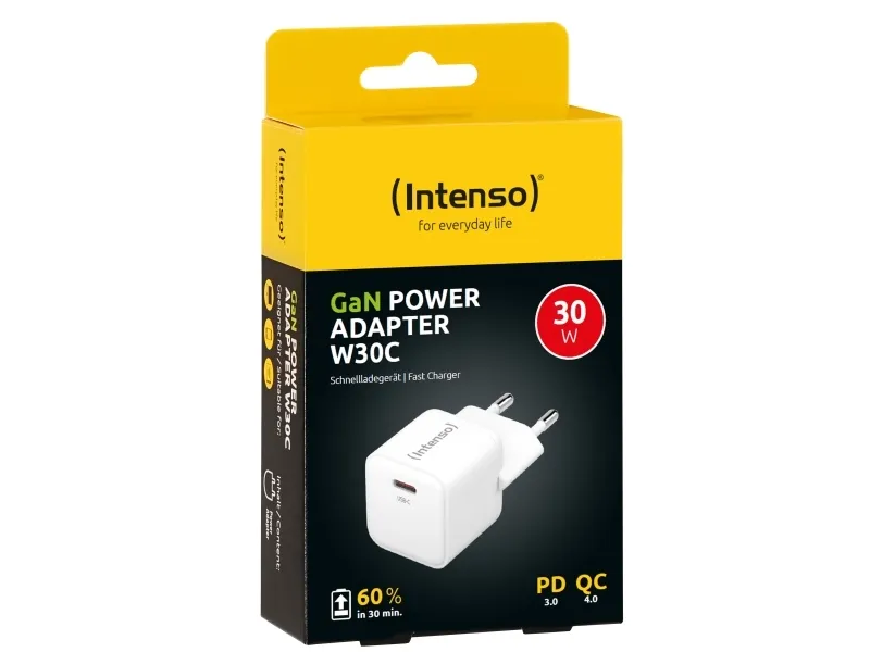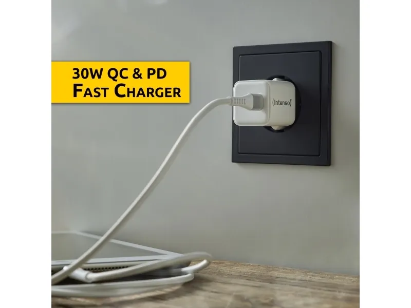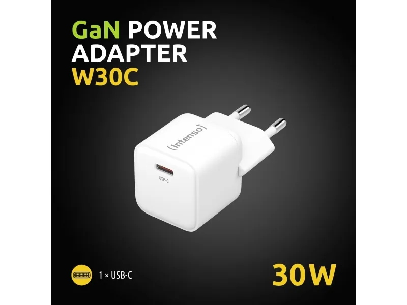 Intenso W30C - Strömadapter - GaN - 30 Watt - 3 A - PD 3.0, QC 4.0, PD/PPS (24 pin USB-C) - vit