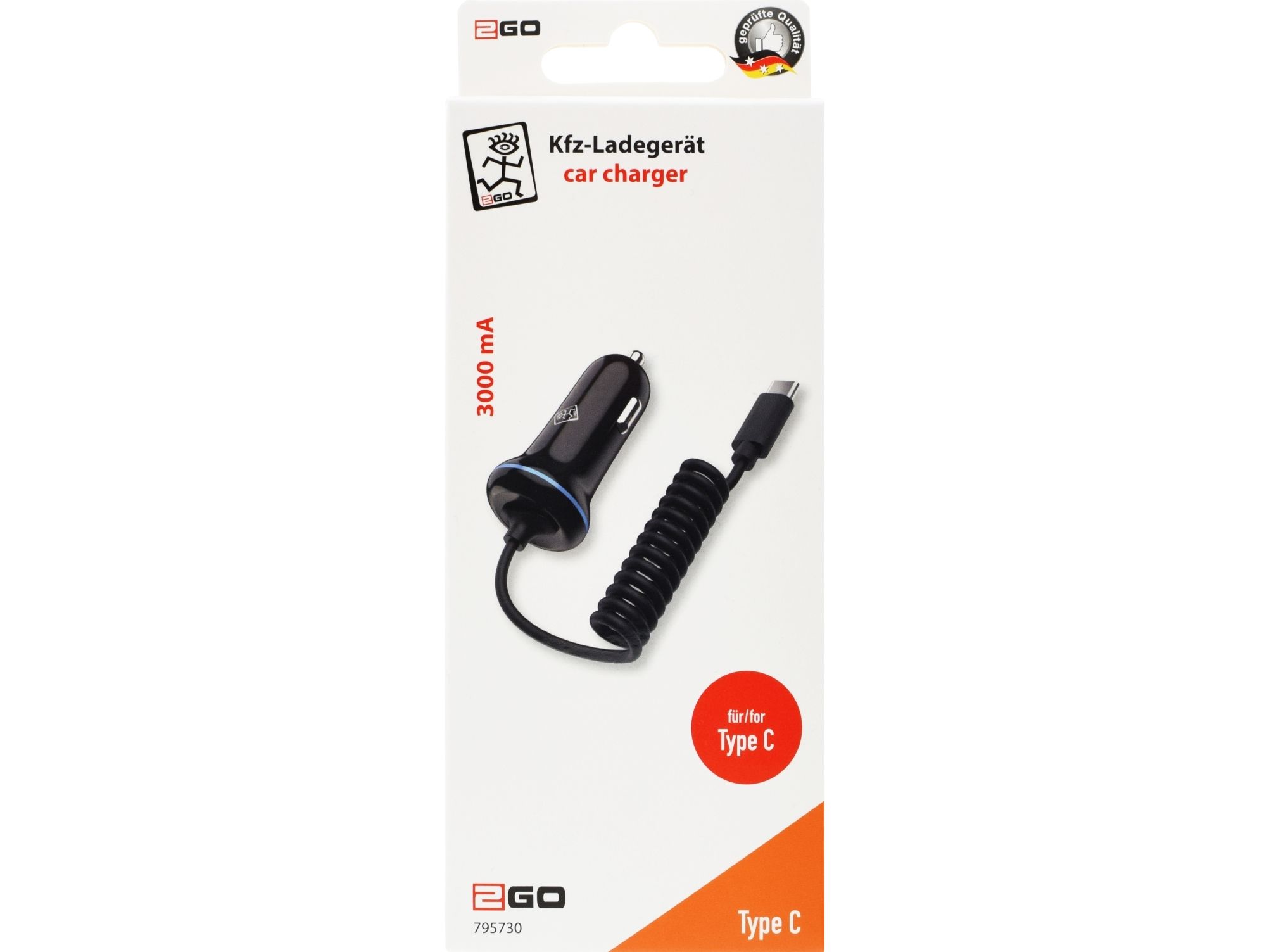 2GO billaddare 12V/24V - Svart USB Type-C 3.1 3000mA