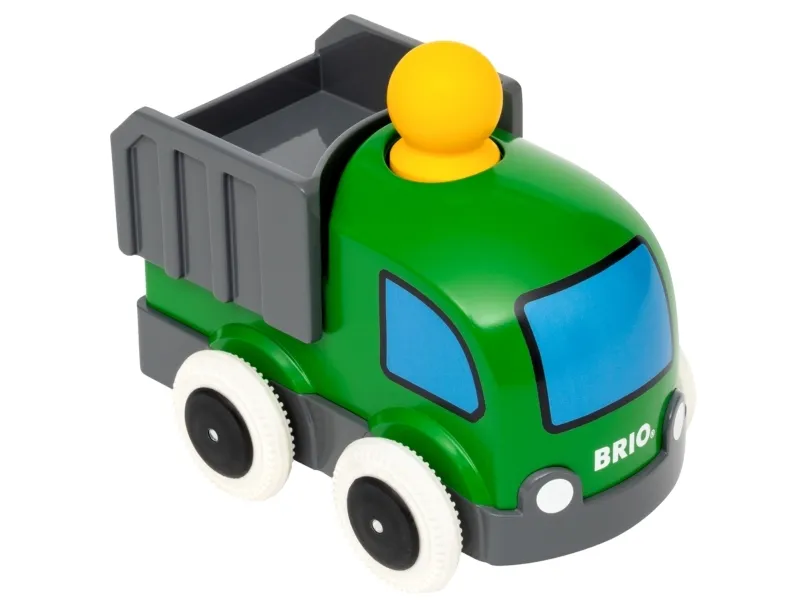 ”Tut-tut!”. Här kommer 30286 Push & Go lastbil – en lekfull leksakslastbil för småbarn som lär sig krypa och gå. Tryck helt enkelt lätt på förarens huvud så kör den iväg! Jaga efter den och låt det roliga börja. Den här roliga lastbilen har också en fungerande container så att du kan lasta, transportera och lasta av dina leksaker. Tillverkad av en kombination av FSC-certifierat europeiskt bokträ, plast av hög kvalitet och med mekanik som garanterat får alla att le.
