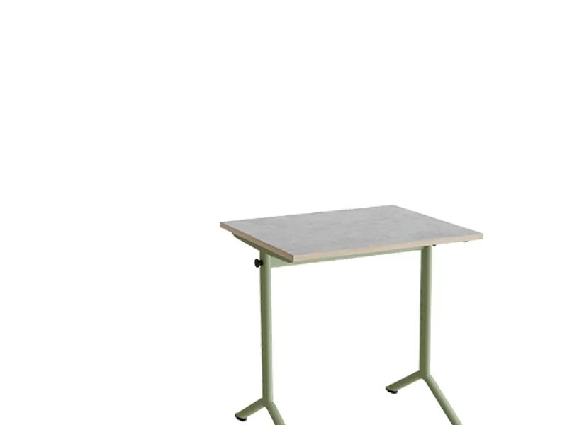Bord Atlas 1130, 700x600mm, lys grå linoleum, grønt stel