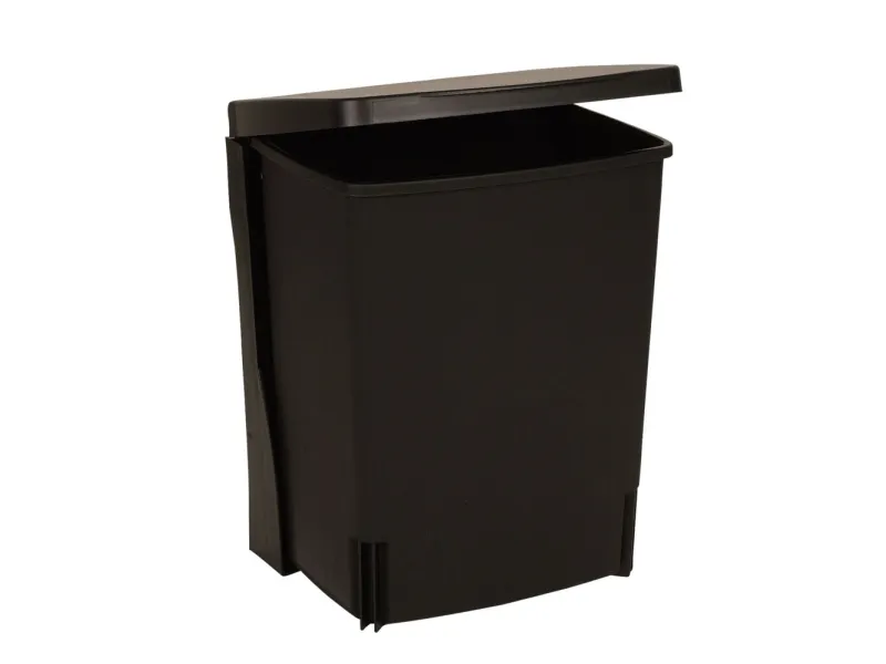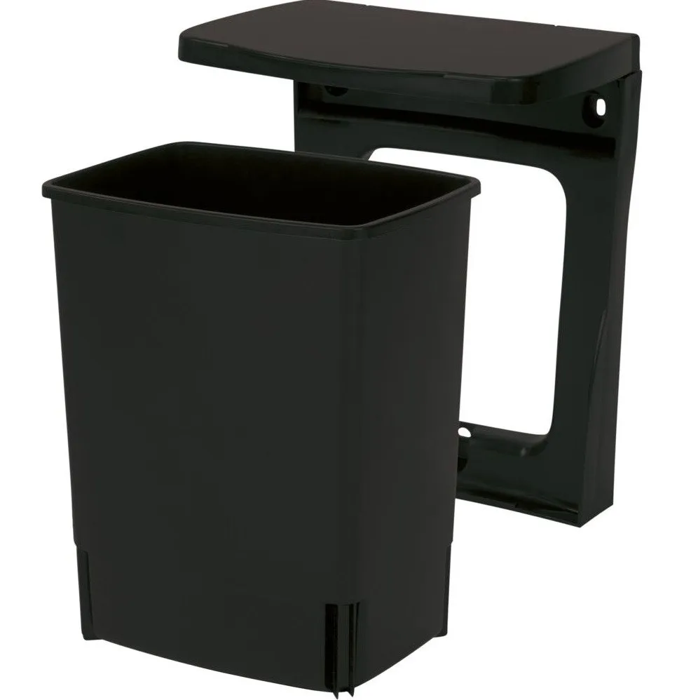 Den sorte plastspand er både praktisk og æstetisk tiltalende. Spanden er forberedt til vægmontering og inkluderer alt nødvendigt tilbehør.