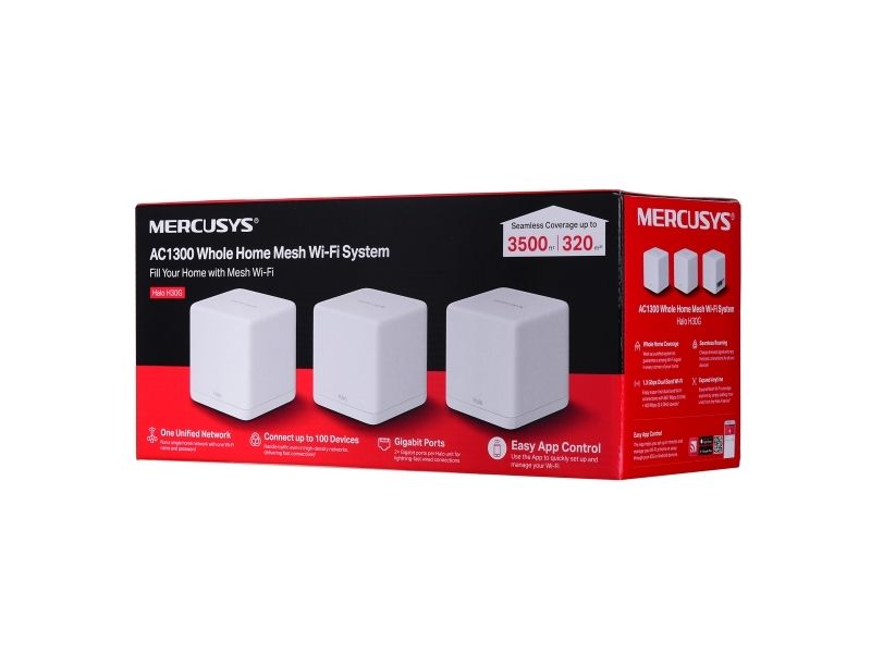 Mercusys Halo H30G(3-pack), Vit, Intern, Dual-band (2,4 GHz / 5 GHz), Wi-Fi 5 (802.11ac), 802.11a, 802.11b, 802.11g, Wi-Fi 4 (802.11n), Wi-Fi 5 (802.11ac), 400 Mbit/s
