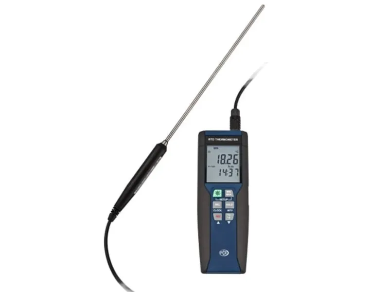 Datalogger PCE-HPT 11-kanals-PT-temperaturmåler inkl. 4 ledere PT 100 klasse A føler/med software til dataoverførsel og til analyse af måledata/intern datalogger mikroprocessor mikroprocessor-termometeret er en meget nøjagtigt 1-kanals temperaturmåleapparat. Mikroprocessor-termometeret er ideelt ideal for diverse PT-100 følere. Ved at bruge fire-leder-teknologien er responstiden særligt hurtig og præcis. Dermed er sensorerne på mikroprocessor-termometeret velegnet til alle meget præcise og hurtige processer. Mikroprocessor-termometeret har et temperaturmåleområde fra -100 til +400 °C. Den omfangsrige og brugervenlige software på mikroprocessor-termometeret giver en nem analyse, og det øvrige muliggør en realtidsvisning af måleværdier og måledata. Det interne ur med dato og klokkeslæt giver brugeren en præcis tildeling af hændelser. Mikroprocessor-termometeret har en intern datalogger med indstilleligt måleinterval.