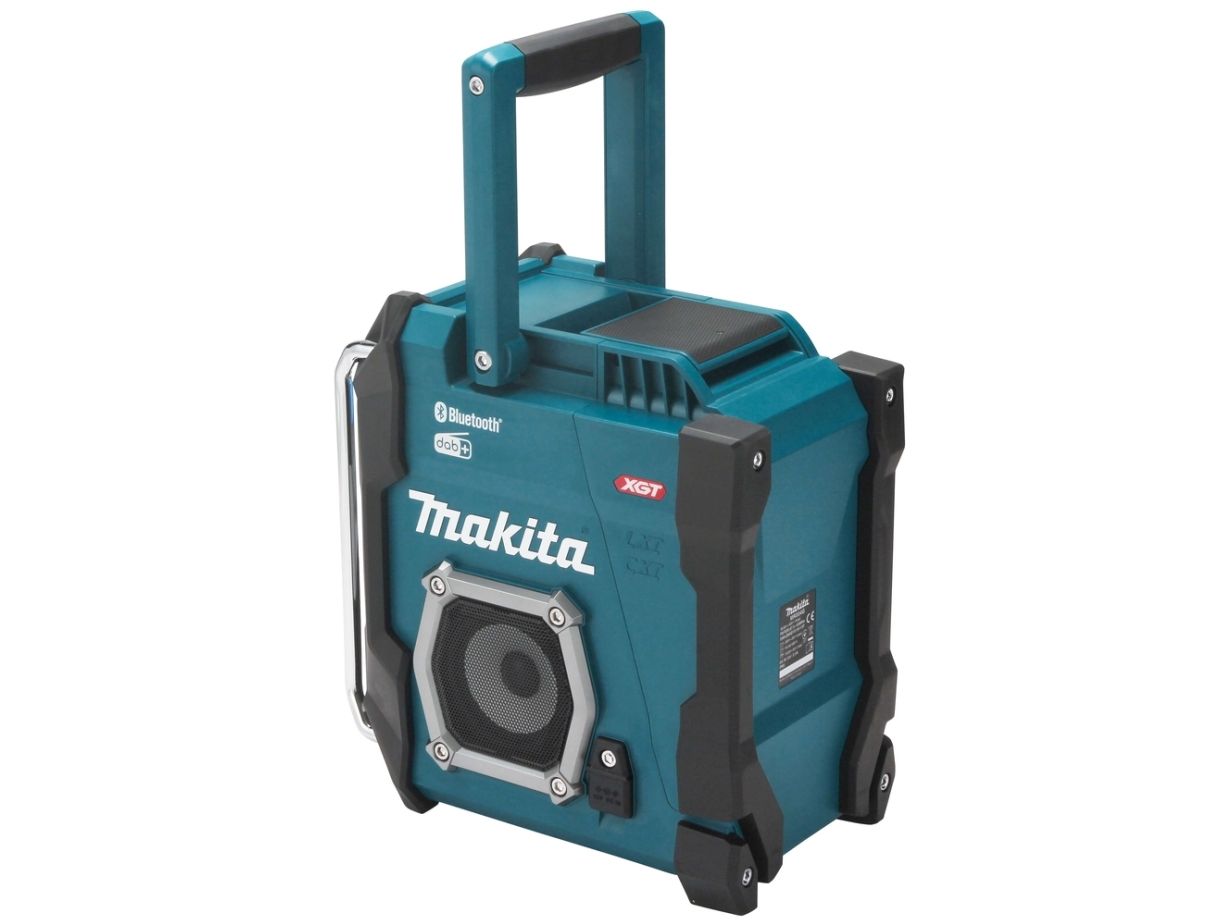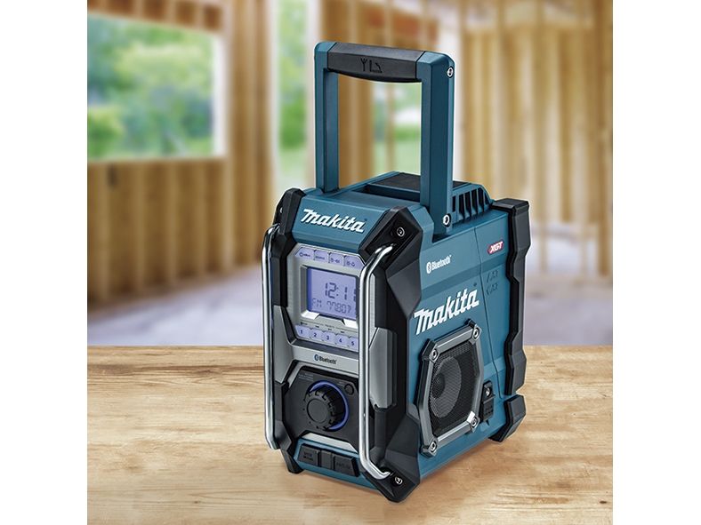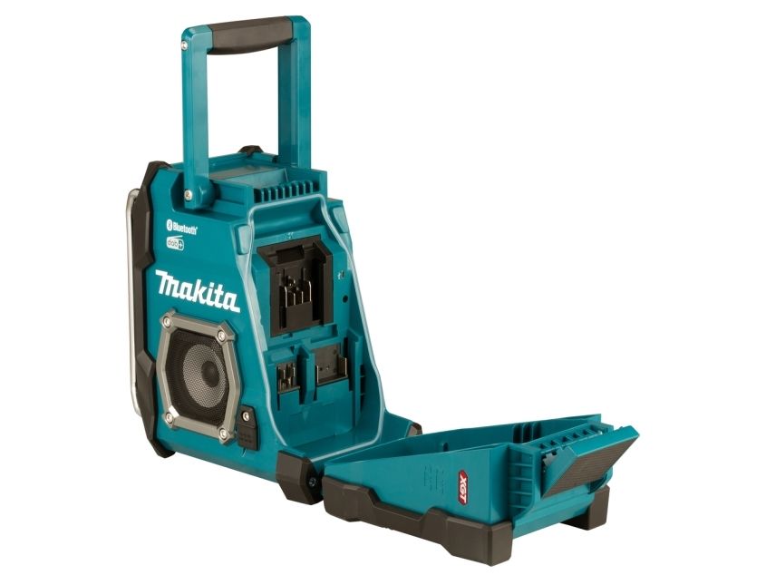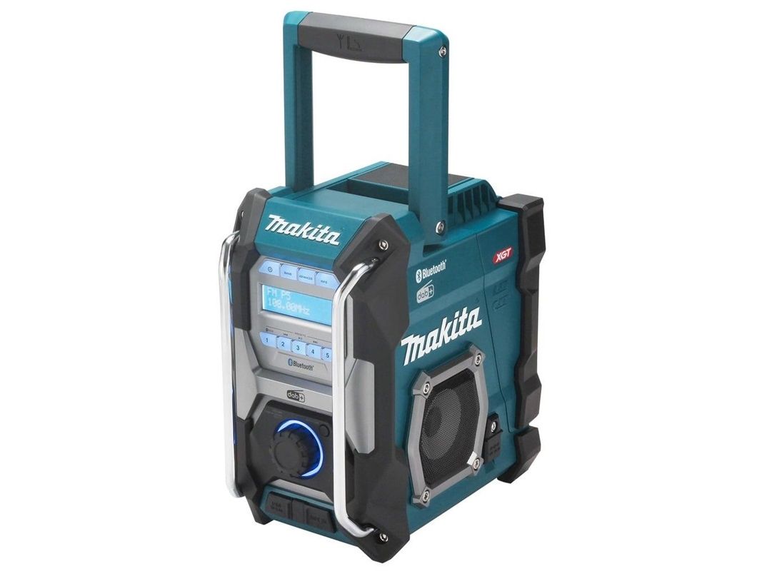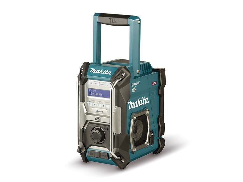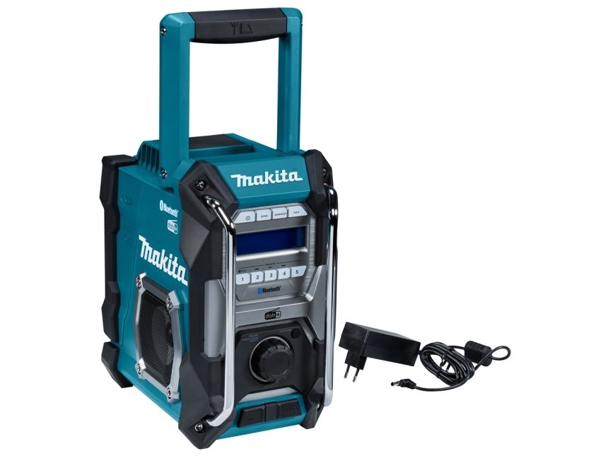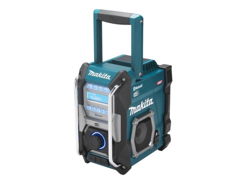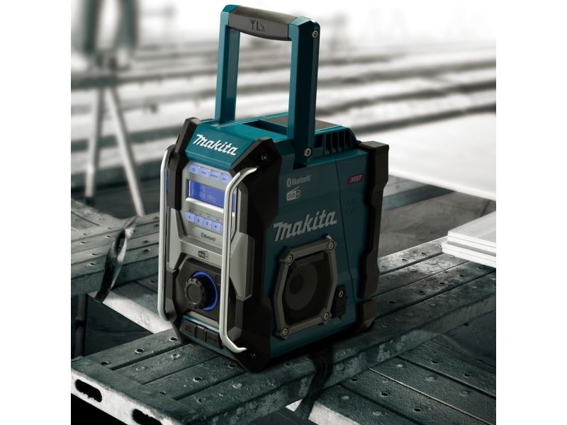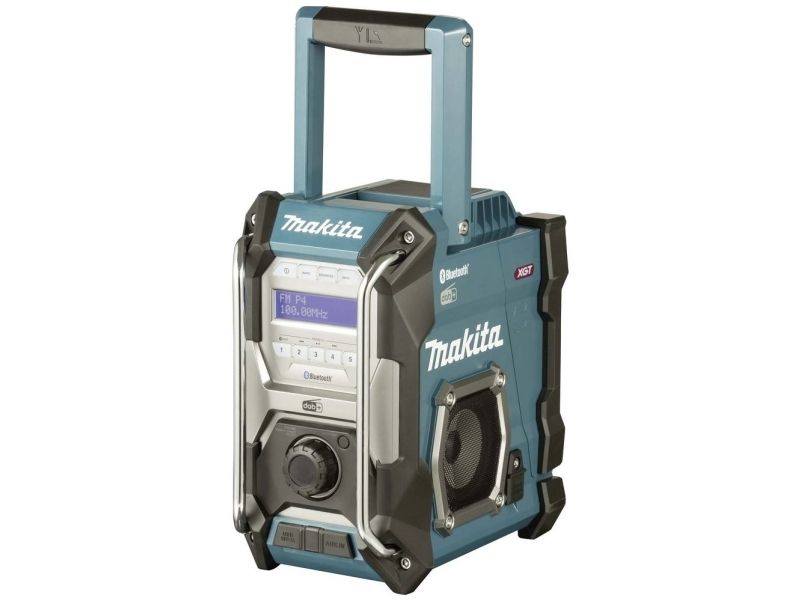 Cordless construction site radio with protection against dust and splash water on all sides (IP64) and two powerful 89 mm loudspeakers. Runs on all CXT 12 V max., LXT 18 V and XGT 40 V max. (XGT up to max. 4.0 Ah) battery packs or the mains adapter supplied. With DAB+/FM reception, AUX-in, Bluetooth and USB connection with 2.4 A output. Five presets each for DAB+/FM.