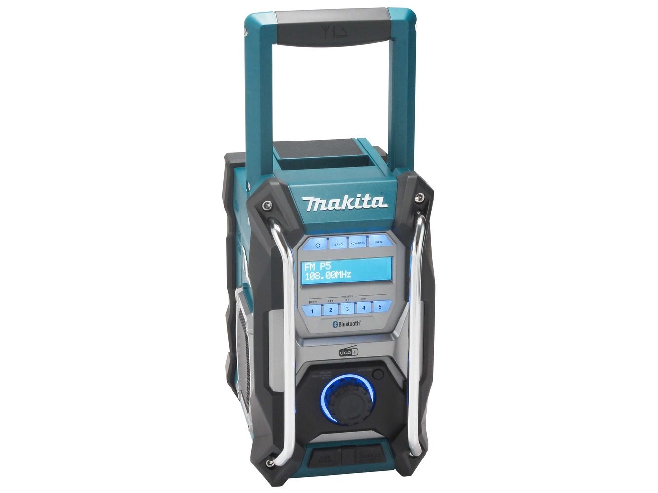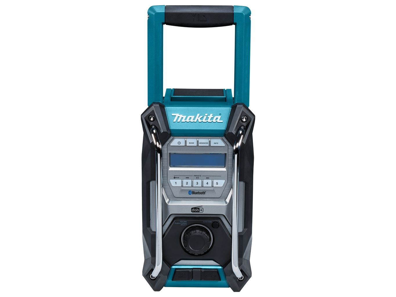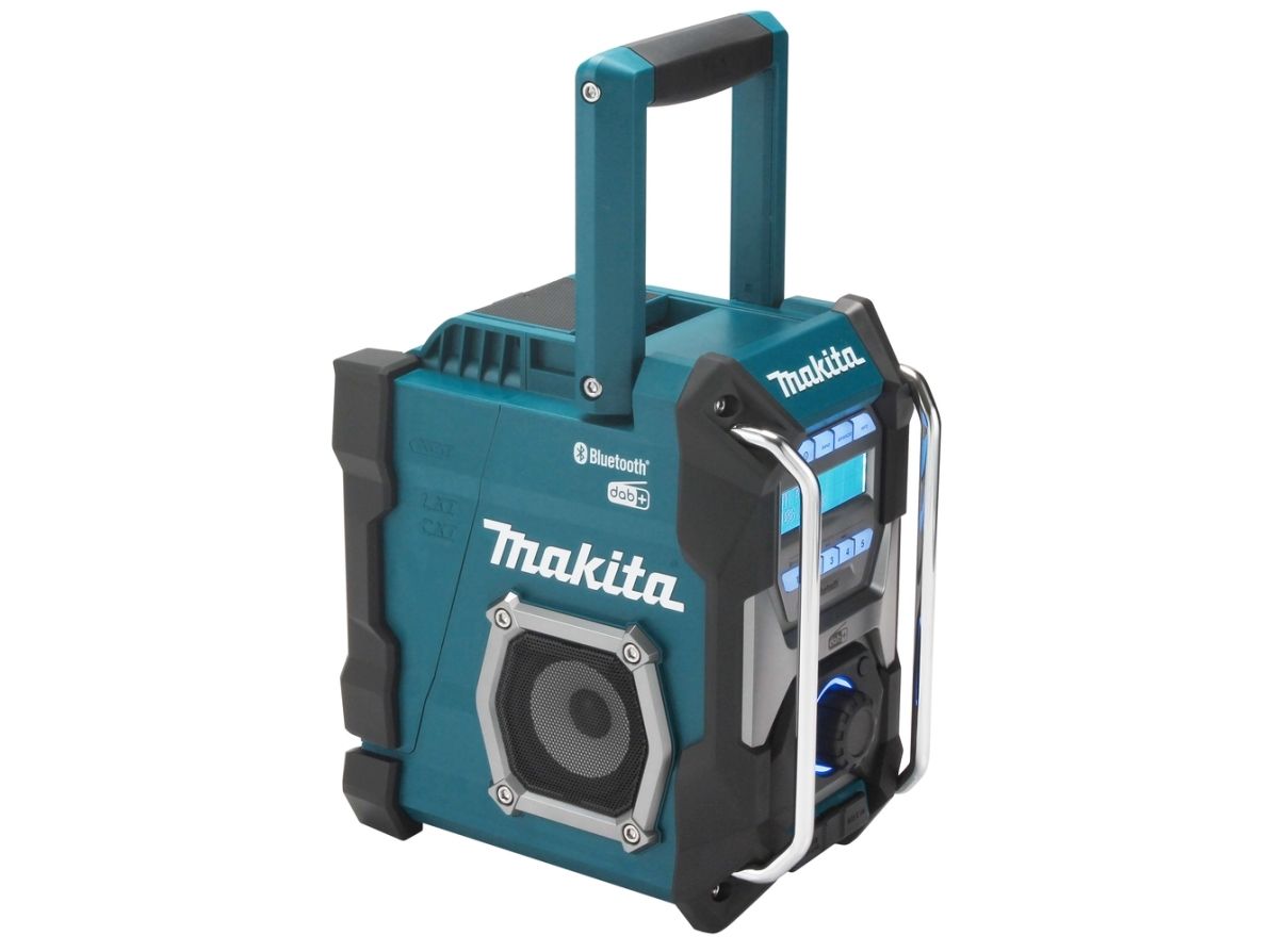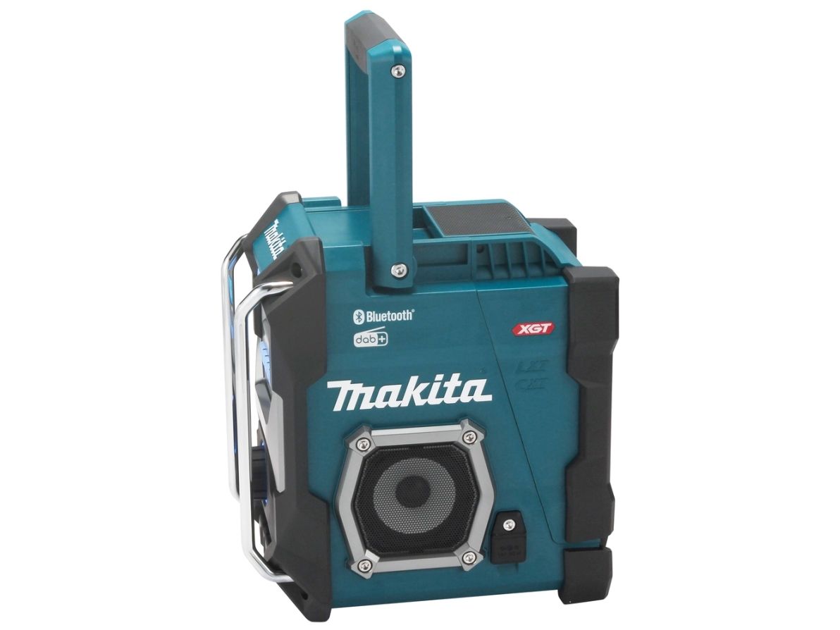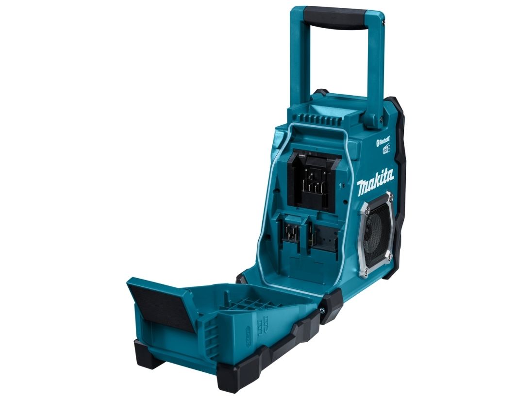 Cordless construction site radio with protection against dust and splash water on all sides (IP64) and two powerful 89 mm loudspeakers. Runs on all CXT 12 V max., LXT 18 V and XGT 40 V max. (XGT up to max. 4.0 Ah) battery packs or the mains adapter supplied. With DAB+/FM reception, AUX-in, Bluetooth and USB connection with 2.4 A output. Five presets each for DAB+/FM.