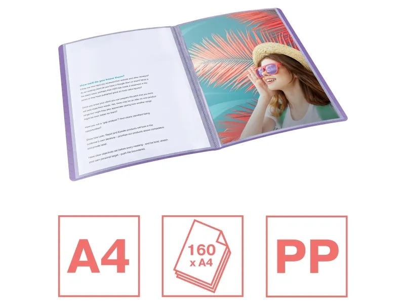 Esselte Colour'Breeze - Visningsbok - 80 utrymmen - ryggbredd: 25 mm - för A4 (210 x 297 mm) - kapacitet: 160 ark - genomskinlig lavendel