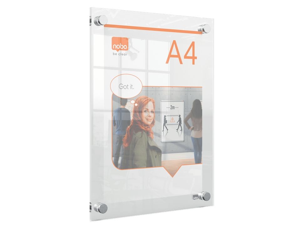 Nobo Premium Plus A4 klar akryl väggmonterad affischram, 297 x 210 mm, Akryl, Horisontell/Vertikal, Fast