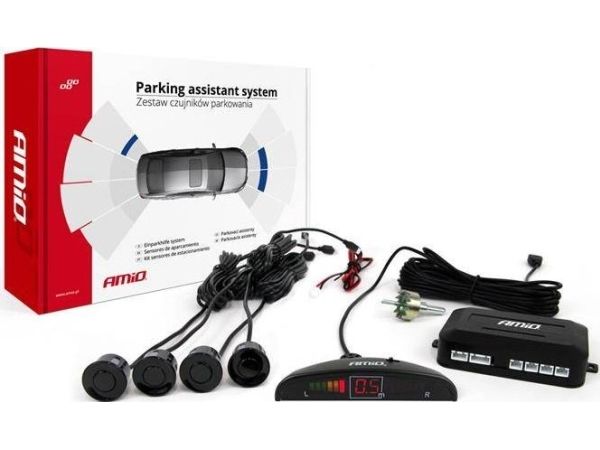 AMiO set med parkeringssensorer för backning LED, 4 sensorer, svarta