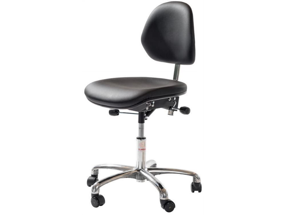 Industristol Aktiv ESD, svart, konstläder, låg, hjul