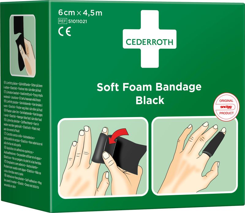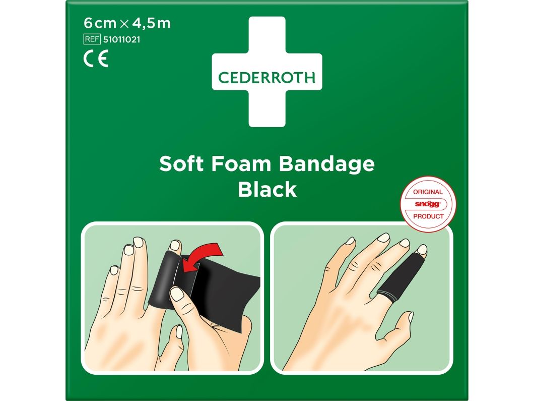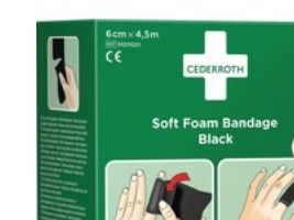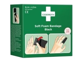 Sårtvätt/bandage, Cederroth Soft Foam, svart, 6 cm x 4,5 m