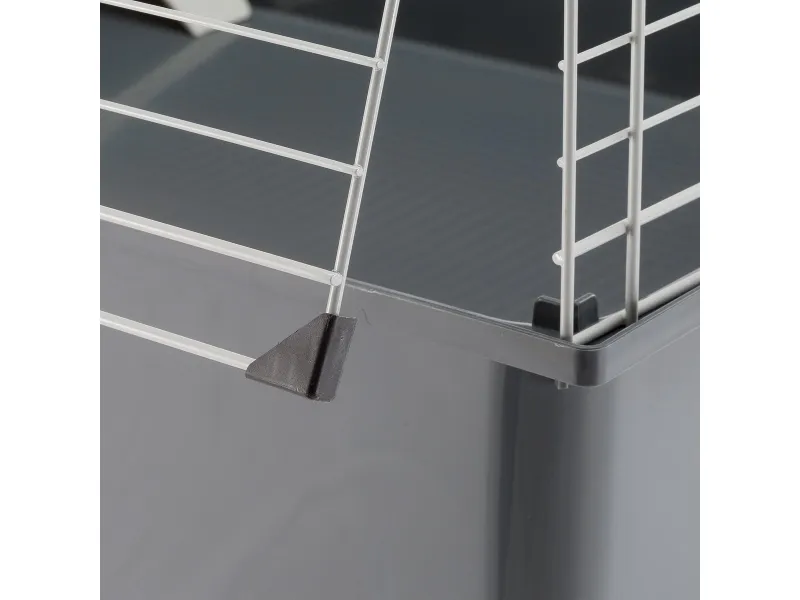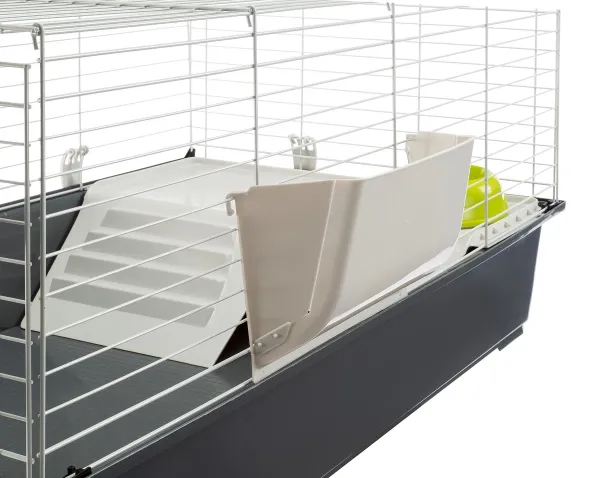 Bur för marsvin med öppningsbar front för att enkelt komma åt djuret. Höstället som ingår i buren fästs enkelt från utsidan och upptar ingen plats inne i buren. Ink. höställ, skål, vattenflaska och hus.