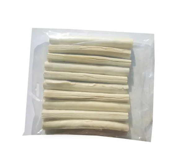Pressad tugga med kokt råhud som är extra skonsam för magen. Pressad tugga med kokt råhud . Torkat nötskinn 100 %. Inga tillsatserAnalyserat innehåll:Råprotein: 85,7 % Råfett: 0,1 % Trämaterial: 0,6 % Råaska: 2,5 % Vatten: 11,4 % Inte avsedd att ersätta en måltid eller en del av en måltid. Mata inte för mycket. Övervaka alltid din hund när du ger den tuggor eller snacks och se till att den alltid har tillgång till friskt vatten. Om din hund får en allergisk reaktion eller uppvisar andra negativa beteenden ska du omedelbart sluta ge produkten. Produkten är avsedd för hundar från 12 månader och äldre Hundfoder. Kategori 3. Ursprungsland: CHN.
