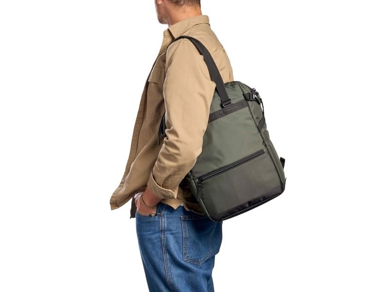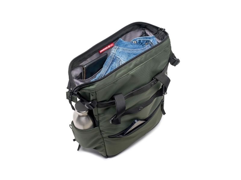 To keep things safe from moisture and rain, the Manfrotto Convertible Tote Bag is made from water-repellent material. For added space and comfort, it is also compatible with the Street Crossbody Smartphone pouch (sold separately).
