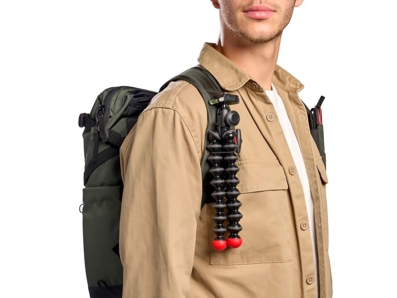 The bag also features a side tripod attachement for a small size tripod on one side and a water bottle holder on the other. A convenient external pocket is positioned on the front in order to have essential items always within reach. The two shoulder straps, when in backpack mode, feature a smartphone holder and a small tripod attachment to always have your creator tools on hand.