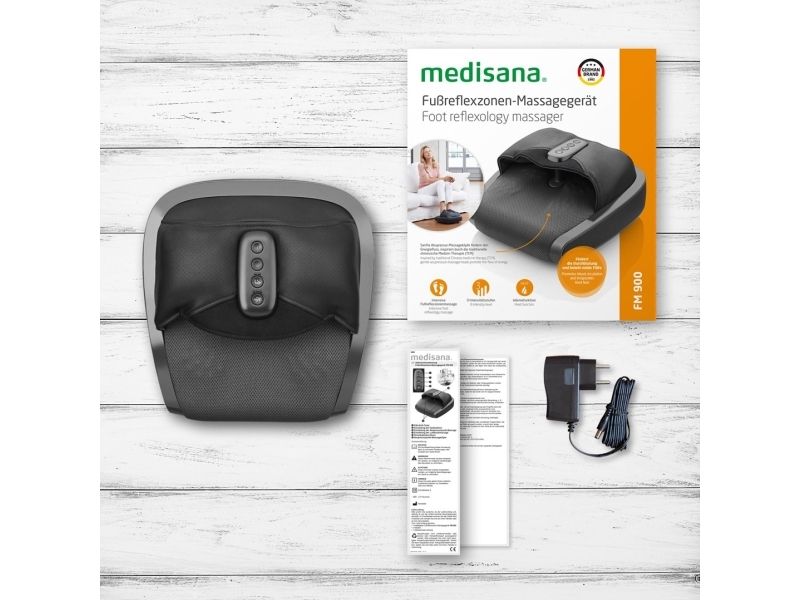 medisana fod-massageapparat FM 900Kabellængde 180 cmVarmefunktion kan slås til2 hastighedstrin til akupresspunkt-massage3 intensitetstrin til kompressionsmassageNem betjening takket være integrerede trykknapperVedligeholdelsesvenligt materialeAutomatisk slukning efter 15 minutter2-i-1: Kompressionsmassage til fodryg og akupunkmassage-massage til fodsålen. Blide akupressur-massagehoveder fremmer energistrømmen, inspireret af den traditionelle kinesiske medicin-terapi (TCM). Fremmer blodgennemstrømningen og genoplivede fødder