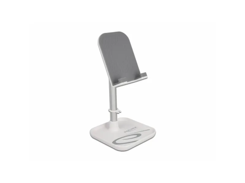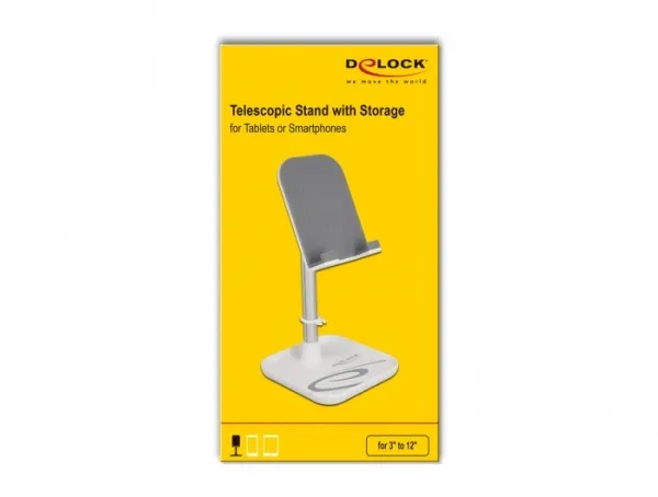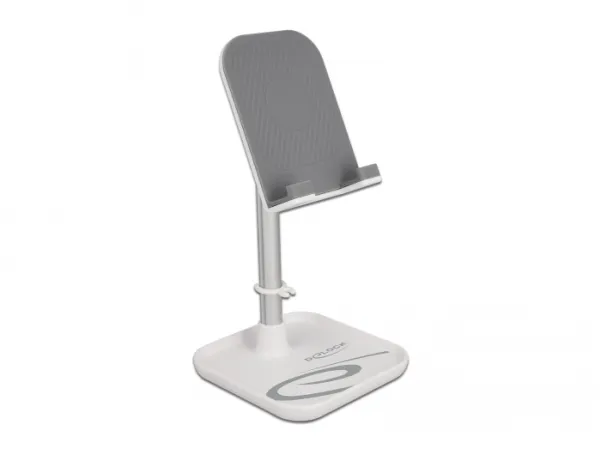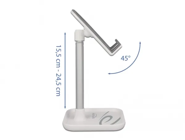 Delock - Ställ för mobiltelefon, surfplatta - telescopic with storage - vit, silver