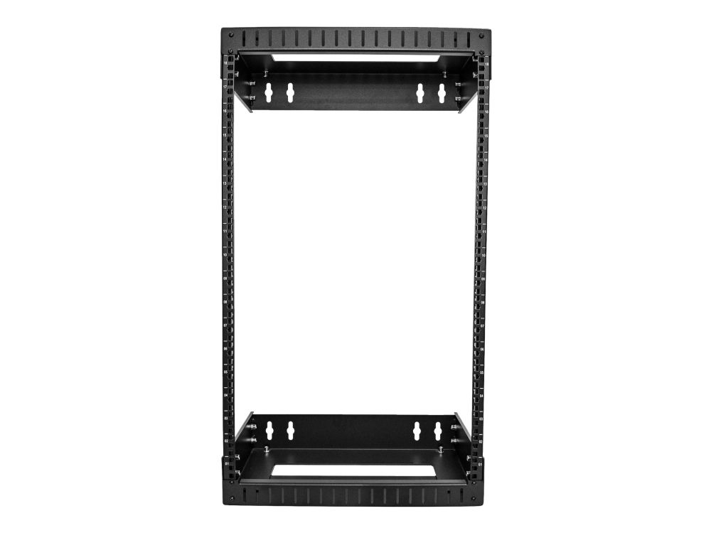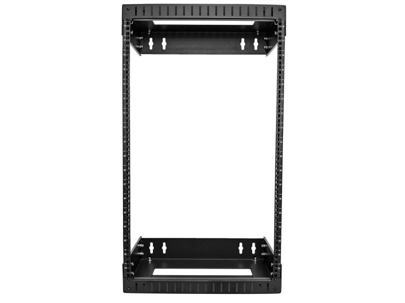 RACK-18U-20-WALL-OA 18U väggmonterat utrustningsrack med öppen ram och justerbart djup är en högkvalitativ, robust reläracklösning som är enkel att montera och installera i alla miljöer.